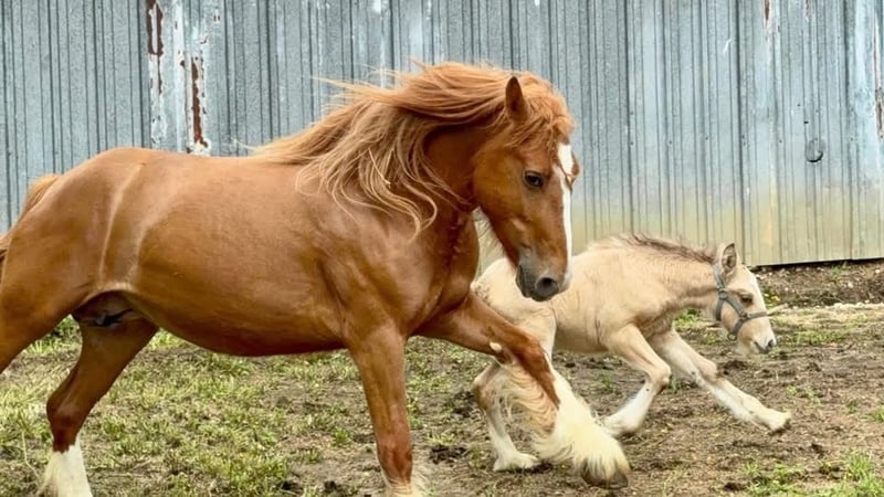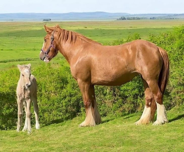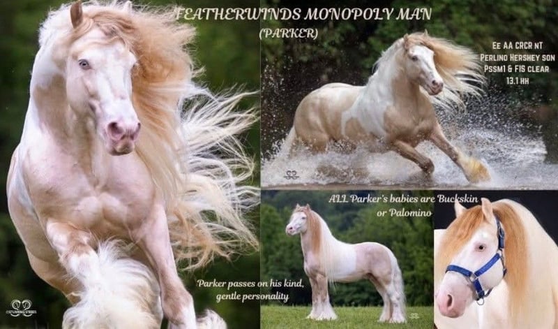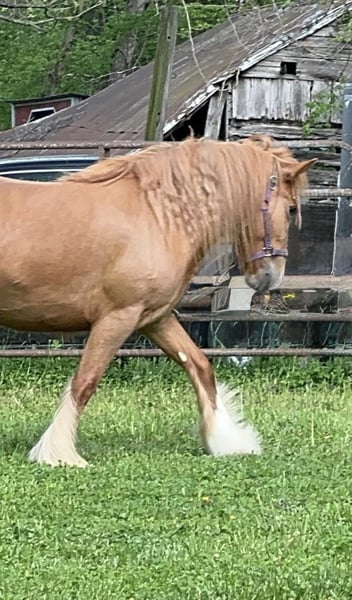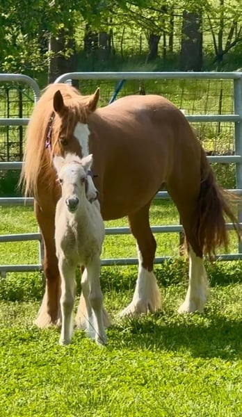 "AVAILABLE ON ONLINE HORSE AUCTION AT www.MagicHorseAuction.com BIDDING OPEN NOW thru TUESDAY | JANUARY 20TH! BUY IT NOW AVAILABLE! *Final price will be determined on auction site* CONSIGNOR CONTACT INFO: Debbie Thorsen #314-368-4000 LOCATION: DeSoto, MO 63020" "Peaches is a tender-hearted 13.2 hand 5 year old red-headed Gypsy, with a wealth of hidden color genetics. She carries red of course, but also silver, agouti and pearl. ee nZ Aa nPrl nn. Peaches has had a rough start in life, if you want her story, you can message me privately. She has given us this gorgeous silver buckskin filly, but she is not being presented as a brood mare. (She came to us pregnant) Our hopes are to see her be someone's heart horse, as she is longing for that connection with a human. However she has been a great mom, unbelievably gentle and doting on her baby. She has had three weeks training under saddle, but is still very green. She's back in training now, first week of January 2026, where she will stay for a few months, unless I find someone for her who wants to do the training or handle the training themselves. Peaches carries one genetic marker of pssm1, which is not consequential in the Gypsy breed. She requires no special diet and has no symptoms whatsoever. This marker can adversely affect stock horses (Quarter horses) but generally has no effects on the Gypsy horse. I've personally had several with the marker, but never once did any of them have an issue. Peaches is out of Bellissima Farms Applejacks , by Bellissima Farms Rugged Cross. ~~~CONSIGNER SPECIAL ADDITIVE~ her purchase could include a breeding to my registered gypsy stallion before she gets picked up, or anytime down the road and we do ship fresh or frozen, as well as live cover. The breeding would be guaranteed to produce a buckskin or a Palomino. ~~ PHOTO OF STALLION ATTACHED "