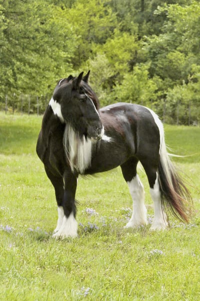 Daphne, yegua Gypsy Vanner de 5 años, 13.3 hh, de color negro y blanco