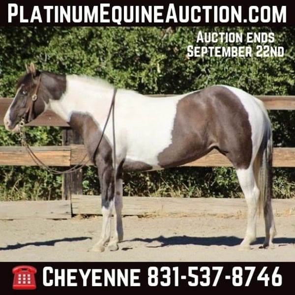 ONLINE AUCTION Place your bids at www.PlatinumEquineAuction.com Starting Bid $3500 Auction ends September 22nd, 2024 Need a new saddle? Check out White Rock Saddles on our website or Facebook! Prada, a stunning 3-year-old crossbred filly standing firmly at 14.3HH, she exhibits a unique grulla paint coat, striking blue eyes, and a thick mane and tail. Her Gypsy Vanner crossbreeding heritage ensures a calm demeanor and attractive features. Despite her young age, Prada has extensive trail experience, exhibiting calmness and composure in various situations. Prada has never offered to bat an eye at anything on the trail, she doesn’t get anxiety in a high pressure situations, and is safe and easy to get along with for most any level rider. She demonstrates exceptional willingness, eagerly crossing trail obstacles without hesitation. Prada’s temperament is characterized by more ‘whoa’ than ‘go,’ allowing her to effortlessly adapt to diverse riding environments, whether solo or in a group setting. She is not buddy nor barn sour. Her arena training is progressing well, showcasing a nice, easy walk-trot-lope in both directions, accompanied by a remarkable stop and collected backup. Prada is responsive to neck reining and leg pressure. She has a great start and will contribute to progress in the western world, or I also believe she could make a big boom into the English world as well. On the ground, she is a delight to handle, demonstrating eagerness to please and a love for water. She will drink out of the hose while bathing her. Prada is well-behaved, easy to shoe, and possesses a strong desire to learn and satisfy her rider’s expectations. She is a complete sweetheart, she will stand tied, hauls great and gets along with other horses. Prada has never acted “fresh” with time off and handled it well. This is an excellent young mare with loads of potential to go any way you want to take her. She is located in Bitterwater, CA. For more info or schedule a time to come meet Prada, contact Cheyenne Rey 831-537-8746. ONLINE AUCTION Place your bids at www.PlatinumEquineAuction.com Starting Bid $3500 Auction ends September 22nd, 2024 Need a new saddle? Check out White Rock Saddles on our website or Facebook!