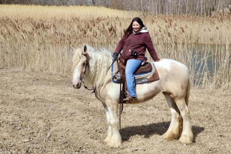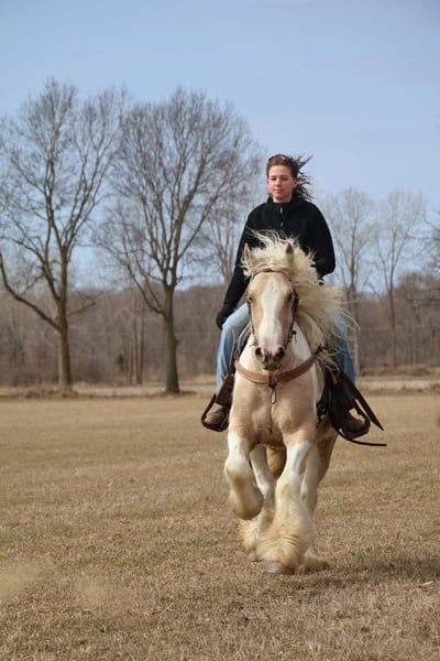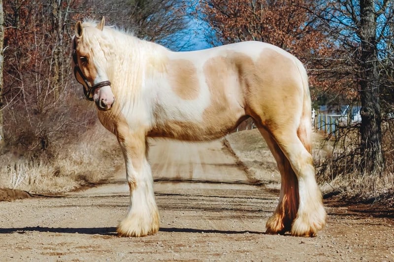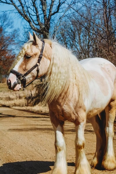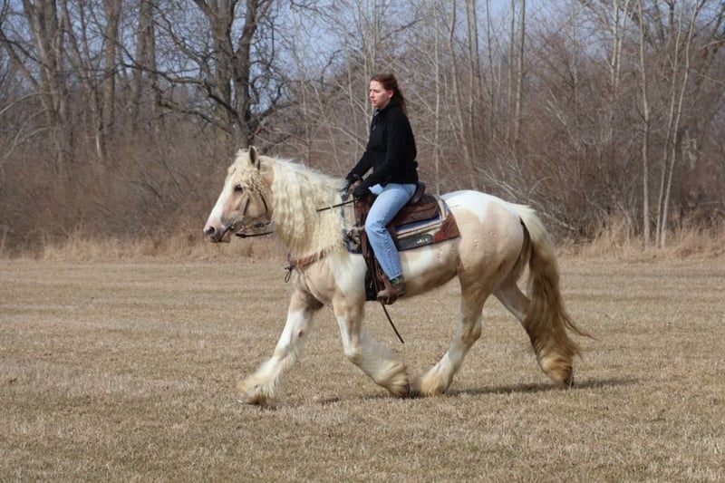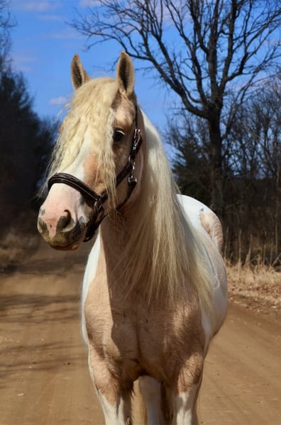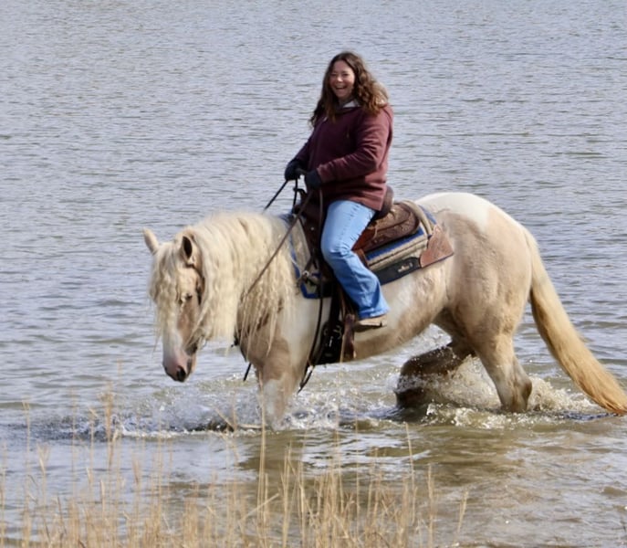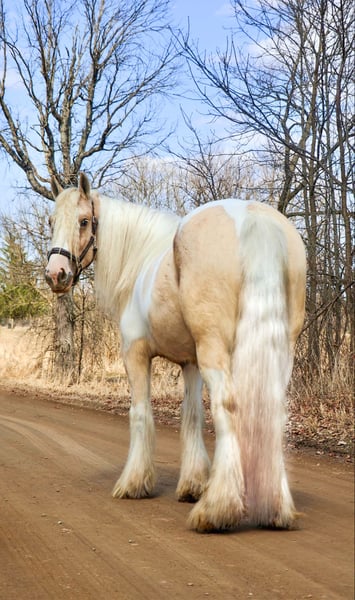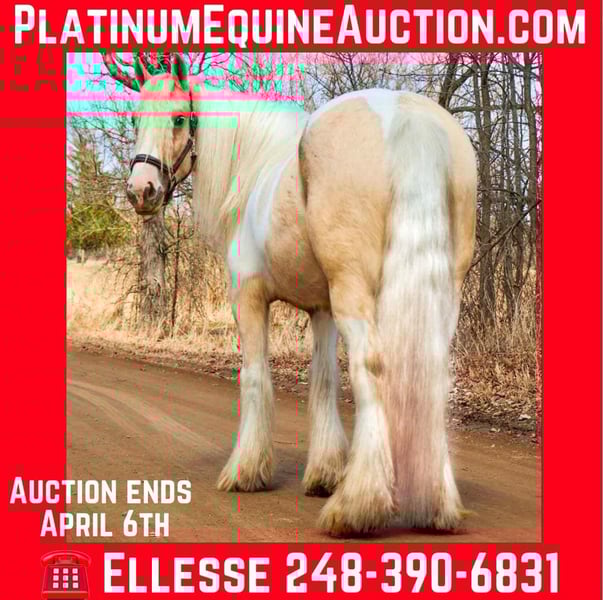 ONLINE AUCTION Place your bids at www.PlatinumEquineAuction.com Starting Bid $3500 Auction ends April 6th, 2025 Need a new saddle? Check out White Rock Saddles on our website or Facebook! I am proud to introduce you to “Charlemagne’s Chasing A Dream” who is a 4 year old 15.1 hh registered Gypsy Vanner mare. We call her Pearl for short and she’s just as beautiful and unique as her name implies. She is put together absolutely beautifully with a long flowing Snow White mane and tail that will stay naturally curly and thick feathering on all 4 legs. She is a stunning Palomino and white Tobiano in color. She has a heart of gold and wears marking on her hind quarters to prove it! Pearl is not only picture perfect she has the mind and attitude to match. Pearl is broke to walk, trot and canter. Her gaits are all delightfully smooth and her transitions upward and down are effortless. She’s worked in the arena and has a solid foundation with seat and leg ques. Shes also been ridden on the trails. Deep woods, traffic, wildlife, open fields, bikes and streams are no problem for her. She is the type you can drop the reins and enjoy the scenery. Pearl is the perfect mix of woah and go. She is quite natured but will move thru the paces with minimal effort from her rider. She can live in or out and plays well with her equine buddies. She stands like a statue for a bath, to have her hair braided or just for regular grooming and tacking. She soaks up every minute of attention. Pearl has been ridden by many first time riders and is a great teacher. She has been thru all phases of our desensitization program and has passed everything with flying colors. She’s been exposed to tarps pool noodles, balls, flags, Bridges, and will not bat an eye at any of it. She’s truly one of a kind and all-around horse that will excel in any direction and has the mind and the looks. Please enjoy her video and give me a call if you have any questions. Located in Howell, MI. Contact Ellesse Schwartz at 248-390-6831 with nay questions. ONLINE AUCTION Place your bids at www.PlatinumEquineAuction.com Starting Bid $3500 Auction ends April 6th, 2025 Need a new saddle? Check out White Rock Saddles on our website or Facebook!