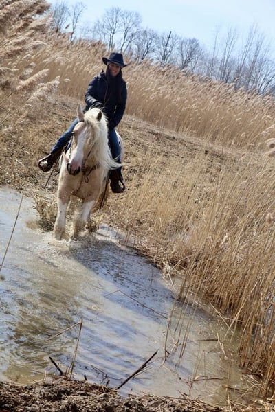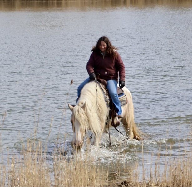 ONLINE VEILING Plaats uw biedingen op www.PlatinumEquineAuction.com Startbod $3500 Veiling eindigt op 6 april 2025 Een nieuw zadel nodig? Bekijk White Rock Saddles op onze website of Facebook! Ik ben trots om u voor te stellen aan "Charlemagne’s Chasing A Dream", een 4-jarige 15.1 hh geregistreerde Gypsy Vanner merrie. We noemen haar kortweg Pearl en ze is net zo mooi en uniek als haar naam doet vermoeden. Ze is prachtig gebouwd met een lange, vloeiende sneeuwwitte manen en staart die van nature krullend blijft en dikke beharing op alle 4 de benen. Ze heeft een verbluffende palomino en witte Tobiano kleur. Ze heeft een hart van goud en draagt markeringen op haar achterhand om het te bewijzen! Pearl is niet alleen een plaatje, ze heeft ook het verstand en de houding die daarbij passen. Pearl is beleerd om te stappen, draven en galopperen. Haar gangen zijn allemaal heerlijk soepel en haar overgangen omhoog en omlaag zijn moeiteloos. Ze heeft in de arena gewerkt en heeft een solide basis met zit- en beenhulpen. Ze is ook op de trails bereden. Diepe bossen, verkeer, wilde dieren, open velden, fietsen en beekjes zijn geen probleem voor haar. Ze is het type waarbij je de teugels kunt laten vieren en kunt genieten van het landschap. Pearl is de perfecte mix van rustig en actief. Ze is van nature rustig maar zal met minimale inspanning van haar ruiter door de gangen gaan. Ze kan binnen of buiten leven en speelt goed met haar paardenvrienden. Ze staat als een standbeeld voor een bad, om haar haar te vlechten of gewoon voor reguliere verzorging en opzadelen. Ze geniet van elke minuut aandacht. Pearl is door veel beginnende ruiters bereden en is een geweldige lerares. Ze heeft alle fasen van ons desensibilisatieprogramma doorlopen en heeft alles met vlag en wimpel doorstaan. Ze is blootgesteld aan zeilen, zwembadnoedels, ballen, vlaggen, bruggen en zal er niet van opkijken. Ze is echt een uniek en veelzijdig paard dat in elke richting zal uitblinken en zowel het verstand als het uiterlijk heeft. Geniet van haar video en bel me als u vragen heeft. Gelegen in Howell, MI. Neem contact op met Ellesse Schwartz op 248-390-6831 voor vragen. ONLINE VEILING Plaats uw biedingen op www.PlatinumEquineAuction.com Startbod $3500 Veiling eindigt op 6 april 2025 Een nieuw zadel nodig? Bekijk White Rock Saddles op onze website of Facebook!