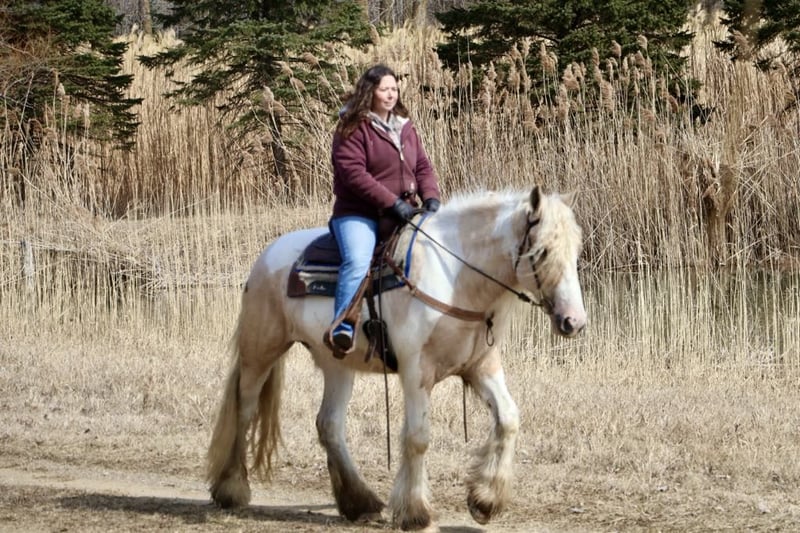 AUKCJA ONLINE Składaj swoje oferty na www.PlatinumEquineAuction.com Cena wywoławcza $3500 Aukcja kończy się 6 kwietnia 2025 Potrzebujesz nowego siodła? Sprawdź White Rock Saddles na naszej stronie internetowej lub na Facebooku! Z dumą przedstawiam wam „Charlemagne’s Chasing A Dream”, 4-letnią klacz rasy Gypsy Vanner o wzroście 15.1 hh. Nazywamy ją Pearl i jest tak piękna i wyjątkowa, jak sugeruje jej imię. Jest zbudowana absolutnie przepięknie, z długą, falującą śnieżnobiałą grzywą i ogonem, które naturalnie pozostaną kręcone, oraz gęstym szczotkowaniem na wszystkich 4 nogach. Jest oszałamiającą klaczą o umaszczeniu palomino i białym tobiano. Ma złote serce i nosi znaki na zadzie, które to potwierdzają! Pearl jest nie tylko idealna na zdjęcia, ale ma także umysł i nastawienie, które do tego pasują. Pearl jest ujeżdżona do stępa, kłusa i galopu. Jej chody są przyjemnie płynne, a przejścia w górę i w dół są bezwysiłkowe. Pracowała na ujeżdżalni i ma solidne podstawy w pracy z sygnałami ciała i nóg. Była również jeżdżona na szlakach. Gęste lasy, ruch uliczny, dzika przyroda, otwarte pola, rowery i strumienie nie stanowią dla niej problemu. Jest koniem, na którym można puścić wodze i cieszyć się widokami. Pearl to idealna mieszanka spokoju i energii. Jest spokojnej natury, ale przechodzi przez chody przy minimalnym wysiłku jeźdźca. Może mieszkać w stajni lub na pastwisku i dobrze dogaduje się z końskimi przyjaciółmi. Stoi jak posąg podczas kąpieli, zaplatania grzywy lub przy zwykłej pielęgnacji i siodłaniu. Chłonie każdą minutę uwagi. Pearl była jeżdżona przez wielu początkujących jeźdźców i jest świetnym nauczycielem. Przeszła przez wszystkie fazy naszego programu desensytyzacji i zdała wszystko celująco. Była narażona na plandeki, makarony basenowe, piłki, flagi, mosty i nie mrugnie okiem na nic z tego. Jest naprawdę jedyna w swoim rodzaju i wszechstronna, będzie się wyróżniać w każdym kierunku, ma zarówno umysł, jak i wygląd. Proszę obejrzeć jej wideo i zadzwoń, jeśli masz jakiekolwiek pytania. Znajduje się w Howell, MI. Skontaktuj się z Ellesse Schwartz pod numerem 248-390-6831, jeśli masz jakiekolwiek pytania. AUKCJA ONLINE Składaj swoje oferty na www.PlatinumEquineAuction.com Cena wywoławcza $3500 Aukcja kończy się 6 kwietnia 2025 Potrzebujesz nowego siodła? Sprawdź White Rock Saddles na naszej stronie internetowej lub na Facebooku!