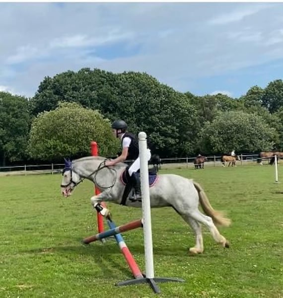 Elsa 7 years 13.1 hh Mare blue blagdon, gypsy mini vanner This pony has been a saint, this is a very sad sale, she is so good in all ways. She has had many different levels of rider and looks after every single one. Ridden by novice children from age 8-14, novice adults max 10st up to 5’3 and experienced riders. She can step it up a gear or go for a quiet plod. She is a nice forward ride without being silly On the ground she is an angel, easy to catch, load, change rugs, groom, shoe, bath, tie. Tack up and go. She will stand for hours to be groomed or at a show and go to sleep until her class. Loads with no trouble at all. Is a real sweetie, to handle leads nicely and has good manners. You can plait her, clip her do vaults and round the worlds and is not spooky at all. She can stress if left alone in a field but has turned out alone and does settle . In the school She loves to jump has jumped 80/90 and gives her all. Loves jumping at home and will do grid work and chase me Charlie’s, she regularly jumps 60/ 70 with ease. Good transitions and breaks, doesn’t buck rear or bolt. If you take a fall she will wait with you. She can be strong on a turn when jumping bigger heights, but is just a bit of schooling she needs, if you rely on your leg and open your hand she never misses. Walk trot and canter and would easily do pony club. Hack Brilliant to hack in company, not spooky, will tackle bridges, bins, bikes, buses, Lorrie’s, canter in open fields without fizzing up and getting strong, walk over cattle grids, do gates and water. She needs a forward thinking rider to hack alone, or she will turn about, but just circling she will turn back easily enough, never says no, never nasty a really nice natured pony. My children have lost interest and I was keeping her on for a loaner who has now moved on to bigger horses. Would be perfect for RDA or pony club, or any novice coming off riding school horses. She’s well built and bare foot, ridden in a Waterford as she can grab the bit but hasn’t done it since using this bit, she’s also got a sensitive mouth so no need to hang off her, never took a lame day in the 2 years I’ve had her. Too perfect to waste in my field, and should be loved and enjoyed by some little person or adult. Comes with decent and fitted tack and rugs Up to date with teeth and vaccinations Microchipped and passported