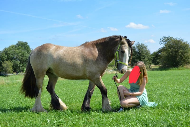 7-jähriges Irish Cob-Stutpferd, ca. 1,55 m groß, mit einer isabellfarbenen Fellfarbe. Das Pferd ist aktuell gegen Tollwut, Wurmkur, Zahnarztbesuche und Hufpflege geimpft und entwurmt. Es ist nicht eingeritten und nicht beschuht, aber bereits im Umgang, wurde schon einmal auf dem Rücken geführt, mit Sattel und Gebiss, allerdings wurde das Training noch nicht vertieft. Sie ist nicht schreckhaft und ist es gewohnt, Traktor, Auto, Hunde und Katzen auf der Weide zu sehen. Während Ausritten hat sie keine Angst vor Autos oder Mopeds. Sie ist sehr neugierig und offen. Sie ist dem Menschen sehr zugetan. Sie liebt es, gestreichelt zu werden, und begrüßt Sie mit einem Wiehern. Das Pferd muss unbedingt das ganze Jahr auf der Weide verbringen! Sie wird nur in eine liebevolle Familie abgegeben, die ihr einen Artgenossen (Pferd, Schaf oder anderes Tier) auf der Weide bietet, da sie andere Tiere mag. Bérénice ist eine reine Rasse, ich bin die erste Besitzerin. Sie kam nach dem Absetzen beim Züchter (Gent) zu mir.