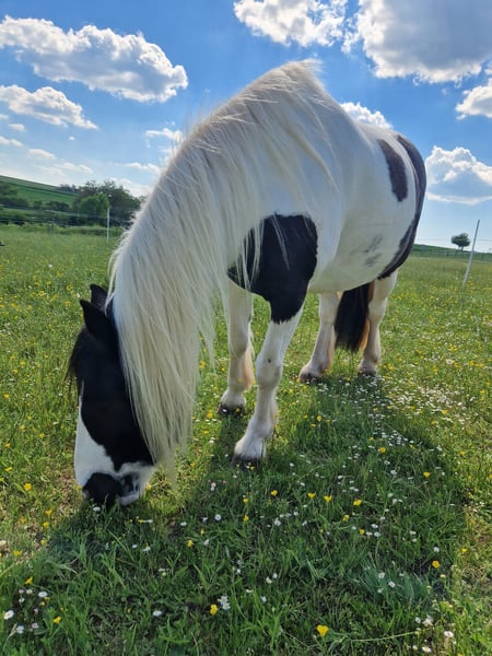 Verkaufe liebe Tinker-Stute – ideal für die Freizeit! Diese charmante Scheckstute wurde im Jahr 2017 geboren und besticht durch ihr freundliches Wesen und ihre angenehme Größe. Mit einem Stockmaß von 142 cm ist sie perfekt für Reiter, die ein zuverlässiges und vielseitiges Pferd suchen. Sie ist unverbraucht, da spät angeritten und eignet sich für den Freizeitbereich sowohl für entspannte Ausritte als auch für die Dressur. Die Stute ist gesund, absolut brav und schick im Erscheinungsbild. Sie ist menschenbezogen, freundlich im Umgang und zeigt sich im Umgang mit anderen Pferden ruhig und ausgeglichen. Kein Ekzem oder Mauke! Es würde auch ein Tausch gegen einen Wallach infrage kommen. Bei Interesse oder für weitere Informationen stehe ich gerne zur Verfügung. Ein persönliches Kennenlernen ist jederzeit möglich!