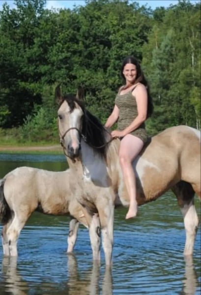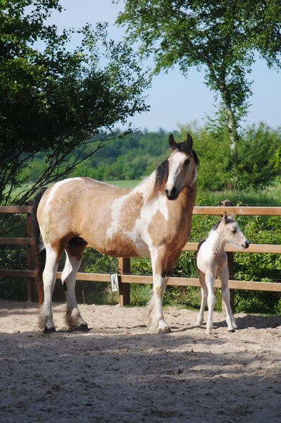 Heavenlysmiles Jolly Jolly ist unsere hypoallergene Curly Horse Stute. Sie ist 1,55 m/1,58 m groß und feiert diesen Sommer ihren achten Geburtstag. Jolly ist eine sehr gute Mutter und hat bereits vier Fohlen zur Welt gebracht. Ihr letztes Fohlen, King, ist gerade geboren, und Jolly ist nun bereit für eine fantastische Reitkarriere 😉 Sie ist angeritten und kann geritten werden, hat aber noch nicht viel Reiterfahrung, da sie unsere Zuchtstute war. Sie ist sehr brav und überaus lieb. Sie wurde immer täglich betreut und war immer von Kindern umgeben. Sie war immer bei uns auf dem Bauernhof, kennt also die Maschinen und die Hoftiere. Ob Sie mit dem Pferdeanhänger zur Show, zum Tierarzt oder einfach nur zum Schwimplatz fahren – Jolly ist rundum zufrieden! Am Juni '24 war Jolly mit fohlen zum Bauern- und Landfest in Aalten. Es waren Tausende von Besuchern da, und er genoss jeden Tag die ganze Aufmerksamkeit. Er kam immer wieder zu allen, um zu kuscheln! Die ungewöhnlichen Dinge wie Musik, Fahnen, Sonnenschirme, Traktorparaden – zu viele, um sie alle zu erwähnen – fand er alles super! Auch die Vorführung im großen Ring zur Förderung der Curly-Rasse und der große Applaus waren für Jolly und Katy kein Problem! Für das Fest und abends zur Unterkunft musste er mehrmals täglich auf den Anhänger. Kurz gesagt: Ein fantastisches Curly Horse, an dem Sie viel Freude haben werden! Wir fragen 12.000 € (ohne MwSt.) für sie. Für weitere Informationen senden Sie mir bitte eine Nachricht
