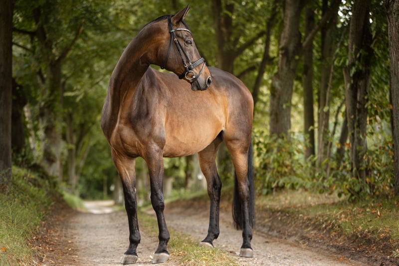 Bonafide is a true all-rounder with versatile talent. His pedigree includes high-quality dressage and jumping genes, and at 9 years old, he demonstrates three good basic gaits, offering both reliability and evident enjoyment in work. He is sired by E.H. Hibiskus, who, aside from his dressage talent, is known for passing on an impeccable character. His dam, Belvedere, is an elite mare, who was part of the auction lot in Neumünster in 2003 and has gifted us a total of eight foals. The breeding with Hibiskus was repeated three times, and all have become "heart horses." After a gentle start under saddle at age four, Bonafide was initially trained solidly to medium level (A/L). Subsequently, he experienced a break that, for personal reasons, lasted longer than originally planned. For about a year now, Bonafide has been in professional training and enjoys a very versatile education—including dressage, jumping, trail riding, and conditioning. We would like to see this versatility continue, as it clearly brings him joy. Additionally, anyone seeking a truly loyal, sensitive lifelong partner may find what they are looking for here. We are searching for a compassionate rider, preferably with experience in groundwork, who understands what it takes to bring a Trakehner onto the bit. A lifelong partnership as a one-person horse would be ideal, as he places great value on a special bond with his rider. Daily turnout or, in winter, paddock turnout is essential. A good veterinary check-up is planned. For those seeking a truly special equine partner, we are happy to provide further information by phone.
