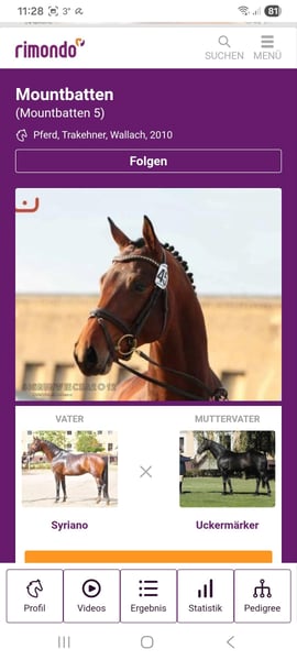 Verkaufe eleganten Trakehner Wallach – idealer Freizeitpartner Zum Verkauf steht ein wunderschöner brauner Trakehner Wallach, geboren im Jahr 2010. Mit einem Stockmaß von 175 cm überzeugt er durch seine beeindruckende Größe und sein harmonisches Erscheinungsbild. Mounty soll nicht mehr im Schulbetrieb eingesetzt werden!!! Er ist in der Dressur ausgebildet und war platziert aber durch eine Nervenschwäche in der Hinterhand ist er vom Turniersport zurückgetreten. Er ist gut ausgebildet, zuverlässig im Umgang und eignet sich hervorragend für ausgedehnte Ausritte, Spaziergänge und entspannte Freizeitritte. Sein freundliches Wesen macht ihn zum idealen Begleiter für Reiter aller Erfahrungsstufen. Er wurde schon öfters im Kinder-Ferienprogramm eingesetzt; daher könnte ich mir gut vorstellen das er sich auch als Therapiepferd eignen würde. Da wir ihn mit schlechten Hufen übernommen haben, lief er jetzt 2 Jahre nur Barhuf wodurch seine Hufe wieder super geworden sind. Er wird alle 6 Wochen dem Hufschmied vorgestellt. Mounty lebt aktuell mit 2 jungen Wallachen in einem kleinen Privatstall wo er Nachts eine gemütliche Box hat, Tagsüber aber den ganzen Tag Draußen ist. Reine Boxenhaltung soll er nicht mehr erleben müssen!! Er ist bei den beiden jungen Wallachen ranghoch, aber auf eine ruhige Weise, das heißt er tritt nicht aus oder kämpft mit den beiden anderen Pferden. Er soll ein schönes Zuhause finden wo er viele tolle Ausritte etc mit SEINEM Menschen erleben und zufrieden alt werden kann. Bei Interesse oder für weitere Informationen stehe ich gerne zur Verfügung. Ein persönliches Kennenlernen ist jederzeit möglich.