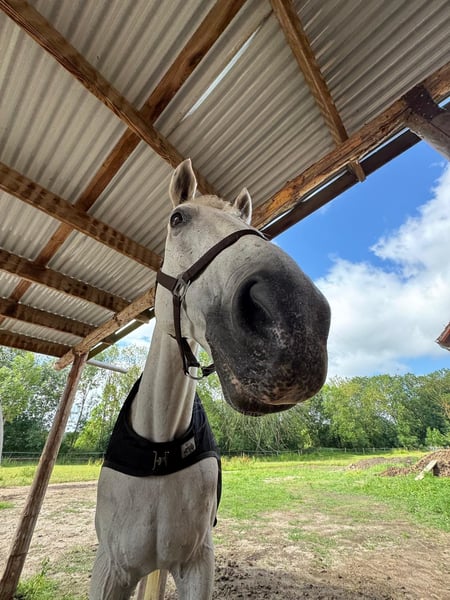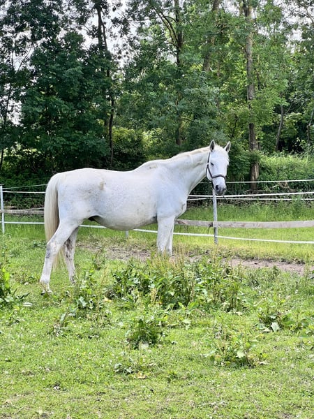 We are seeking a new home for our Trakehner gelding. He is 18 years old. He has arthritis in his right front knee, which is only noticeable on warm summer days; otherwise, he is in excellent condition. He does not require any additional feed or medications. He has been dewormed recently. He loads willingly. He shows no resistance at the farrier. Accessories are included. Please feel free to contact me with any questions. He is sold as a conditionally rideable companion horse. A passport is available.
