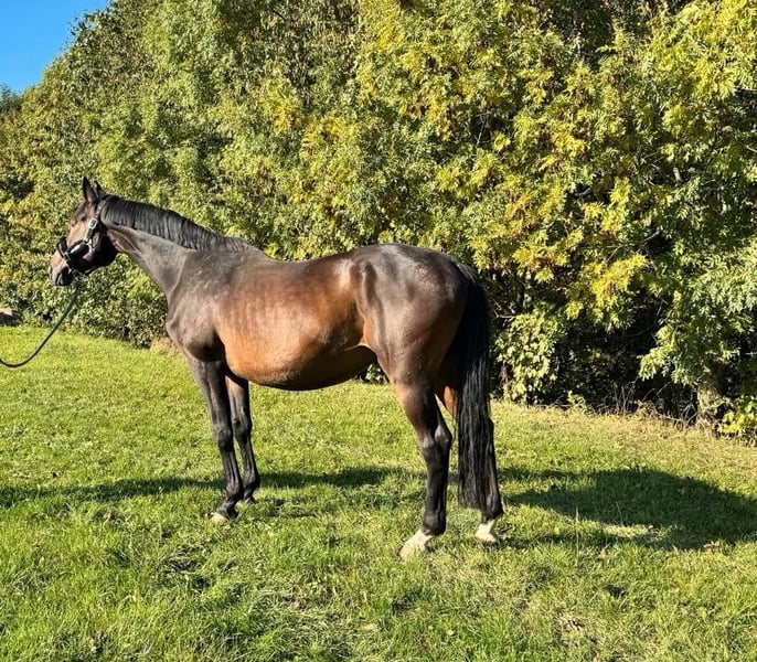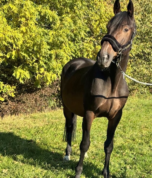 En raison de circonstances tragiques, les éleveurs ont dû confier ce gentil cheval à un box. Afin d'éviter à la pension équestre des coûts supplémentaires et un surpeuplement (après accord avec la pension), j'ai décidé de l'accueillir d'abord chez moi et de lui chercher un foyer approprié en toute tranquillité. Il n'a pas été monté et ne connaît pas grand-chose d'autre, il peut donc parfois être un peu impulsif lors du longeage. Très amical, avec un tempérament calme et sociable avec les autres chevaux, il est tout simplement heureux lorsqu'il a de la compagnie. Peut-être que quelqu'un a encore une place pour ce gentil hongre au cœur d’or.