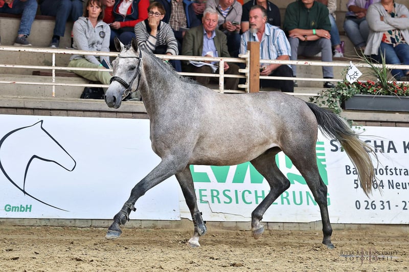 Rush Hour stammt ab von Blancor - Hockey - Peron Junior - Symbol. Er wurde im Sommer angeritten und ist seitdem wieder auf der Weide um sich in Ruhe weiter entwickeln zu können. Beim anreiten war er immer total brav und wollte alles richtig machen. Aufgrund seiner Abstammung hat er sowohl sehr gute Grundgangarten als auch sehr großes Springvermögen. Er ist qualifiziert für den Freispringcup in Neumünster beim Trakehner Hengstmarkt am letzten Novemberwochenende 2025. Sein Vater Blancor v. Adorator war 2022 Geländepferdechampion der fünfjährigen Vielseitigkeitspferde. Den 100 TT legte er als Zweitplatzierter ab. Mütterlicherseits entstammt Blancor einer der erfolgreichsten und leistungsstärksten Stutenlinien. Seine Mutter Blanchette ist Vollschwester von drei gekörten Hengsten und brachte zudem drei Töchter hervor, die jeweils als Eintragungssiegerinnen überzeugten. Ihr Sohn Basmati wurde für die Weltreiterspiele in Tryon nominiert. Die Vollschwester Bisazza ist bis CCI** erfolgreich, während Ballouette Siege und Platzierungen in Springprüfungen der Klasse S vorweisen kann. Die Mutterline Hockey – Peron Junior – Symbol steht ebenfalls für höchste Spring- und Dressur-Veranlagung. Hockeys Nachkommen zeichnen sich durch gute Bewegungsmechanik, klassischen Typ und vielseitige Einsatzmöglichkeiten aus – sowohl im Sport als auch in der Zucht. Peron Junior zählt zu den markanten Dressurvererbern im Bereich der Trakehner Zucht. Er glänzt mit einer sportlich geprägten Abstammung und konnte selbst im Viereck Siege sowie hochwertige Platzierungen. Symbol hat in der Trakehner Zucht sehr rittige und vor allem springbegabte Nachkommen gezeugt. Aufgrund seines jugendlichen Alters ist Rush Hour noch nicht weit gefördert. Er hat keine Unarten, lässt sich problemlos verladen und ist dabei sehr cool und nervenstark. Aktuell ist er 162 cm und noch im Wachstum. Wegen Zuchtaufgabe/Bestandsverkleinerung unter Preis zu verkaufen.
