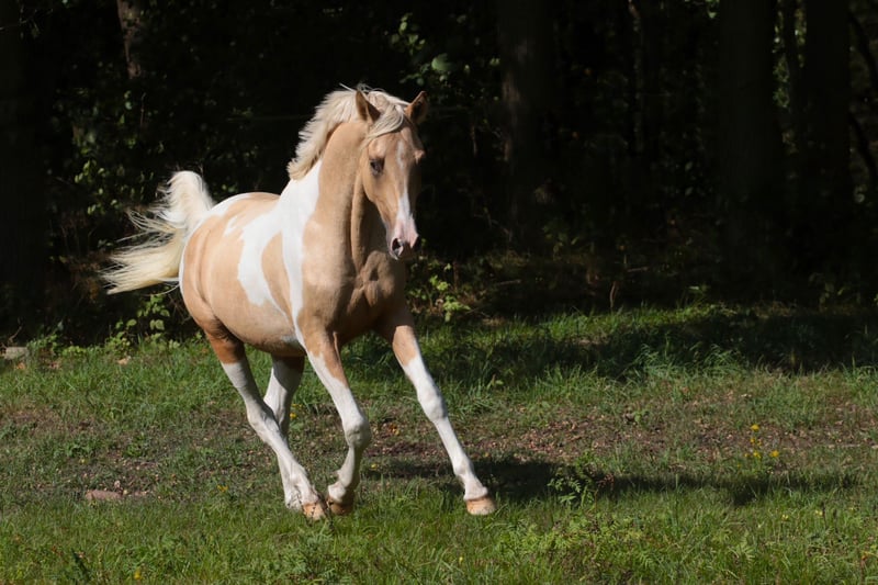 PRISET GÄLLER FÖR KASTRERING UPP TILL SENAST 3 ÅR GAMMAL!!! Lupinenhofs Spotify är en otroligt självsäker liten kille. Han är alltid där, är med överallt och måste utforska allt. Han lär sig snabbt och är lätt att övertyga. Han är absolut orädd och nyfiken. Visuellt är han ett riktigt blickfång. Inte bara hans sällsynta och speciella färg (palomino piebald, såvitt jag vet den enda i världen), utan också hans närvaro är mycket imponerande. Han är alltid där direkt när han ska visa upp sig och gör det mycket gärna. En sann showman. Hans härstamning är långt ifrån den gängse. Han har 73% arabiskt blod, och även om han är av arabiskt ursprung är han stark med en stabil och mycket korrekt grund. Hans farfar är Camaro. På grund av sin stamtavla, kvalitet och färg skulle han verkligen vara intressant för avel. Jag ser honom i uthållighets- eller eventingsektorn. Hans sluthöjd kommer att bli cirka 1,62 meter. Hans mor har sprungit distanser på upp till 61 kilometer. Hans mormor upp till 90 kilometer. Hans far är framgångsrik inom fälttävlan. Video tillgänglig, kan skickas på begäran. Spotify fick stanna länge hos sin mor och avvandes av henne. Han växte upp i en flock och bor i ett öppet stall. Han har 24/7/12 frisk luft, ljus och motion, utfodras med högkvalitativt foder och har alltid tillgång till hö. Självklart är han vaccinerad, regelbundet avmaskad och går till hovslagaren var 6-8:e vecka. Allt som allt en perfekt grund för ett långt och friskt hästliv. Eftersom bra uppfödning kostar pengar ökar priset med åldern.