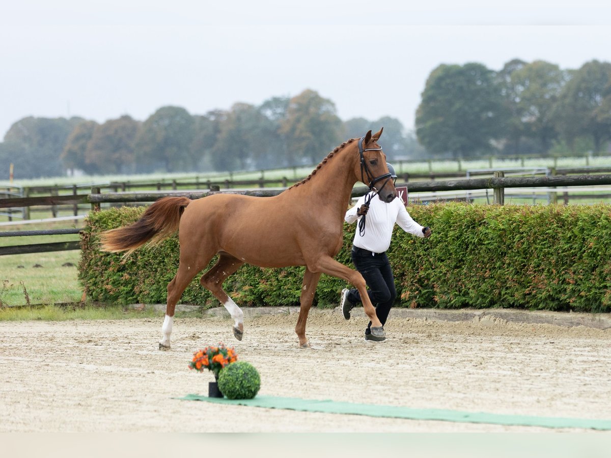All information about him and his family can be found here: https://abraxans.com/verkaufspferde/gesellenstueck Gesellenstück is a typy, well-built colt born on February 28, 2023, from a private family breeding. This young chestnut 🦊 has excellent basic gaits and also shows great talent over fences. He descends from a very special mare line, the Glühlampe family, which has consistently produced State Premium and Elite mares. His dam, StPr and PrSt Countess Cosel, was the regional champion mare. His sister, StPr and PrSt Gold Countess, received the title of best jumping mare last year, and this year she was Reserve Champion at the regional mare show. His sire, elite stallion Imperio, was part of the Olympic squad with riding master Hubertus Schmidt. Gesellenstück has been in preparation for the licensing for about three months now. Since he is still fully developing, we decided that he should also get to know the rider in walk, trot, and canter afterward. He is currently back in the foal group to continue maturing peacefully. A castration is planned soon; however, if there is interest in promoting this valuable bloodline until the saddle licensing, please contact us as soon as possible. He has an impeccable X-ray health certificate, a very solid foundation, and has grown up healthy within a herd. Naturally, he is regularly vaccinated and dewormed. All information about him and his family can be found here: https://abraxans.com/verkaufspferde/gesellenstueck