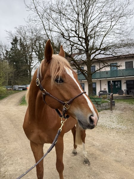 Han Solo Ist ein eleganter, wüchsiger, sehr Menschenbezogener Trakehner, mit einem Pedigree abseits vom Mainstream. (volles Papier und als Fohlen prämiert) Geboren 2023 Er ist brav im Umgang (führen, Schmied, Tierarzt) extrem Menschenbezogen hat aber auch viel Temperament und einen hohen Bewegungsdrang. Geht auch schon auf den Hänger und allein zur Bodenarbeit auf den Reitplatz! Aktuell ist er noch Hengst kann aber gelegt werden. Er ist immer für einen Spaß aufgelegt, sehr verspielt, sehr neugierig, nicht ängstlich Endmass voraussichtlich um die 1,70-1,75 Also Fohlen schon deutschlich im Hengstyp stehend wurde eine Aufzucht als Hengstanwärter empfohlen. Absolutes Outcross Pedigree! Vater: Karim Dore (Erfolgreich, rittig und mit hohen Reitpferdepoints ausgestattet!) Mutter: Hexes Hedgefonds ( hochinteressant im Blutanschluss- steht auch hier auf dem Gestüt und kann angeschaut werden) Wie auch seine Mutter verfügt er über ein ausgezeichnetes Fundament mit grossen Hufen, ist intelligent und sehr motiviert. Er hat einen hohen Bewegungsdrang und ist ein mutiges Pferd. Wie auch seine Eltern bringt er Talent für alle Disziplinen mit oder eben als ambitionieres Freizeitpferd für jede Sparte. Elastische, überdurchschnittliche aber relle Gänge mit ganz viel Schub aus der Hinterhand und ein grundsätzlicher Lerneifer machen ihn zum interessanten Nachwuchspferd. Hansi wächst auf unserem privaten Gestüt, behütet und liebevoll mit viel Menschenkontakt auf Bei uns wird täglich 2x gemistet (keine Matraze) 2x Kraftfutter (Lexa Bio, Equistro Mineralfutter) 24/7 Heu, alle 8 Wochen Schmied, 4x jährlich entwurmen. Wir legen auf eine Top Aufzucht in kleinen Gruppen den höchsten Wert. Wir wünschen uns für Hansi ein tolles Zuhause, idealerweise auf Lebenszeit. Wird nur wegen Zeitmangel schweren Herzens abgegeben.