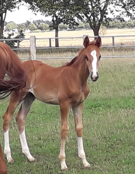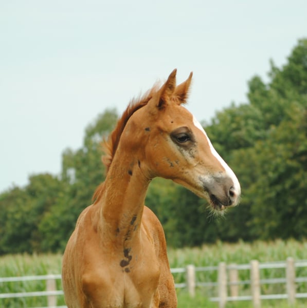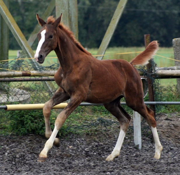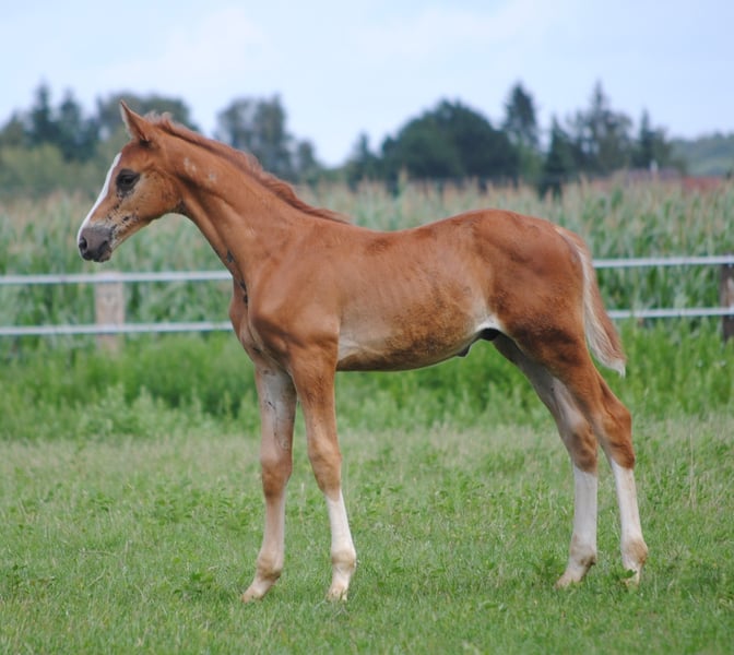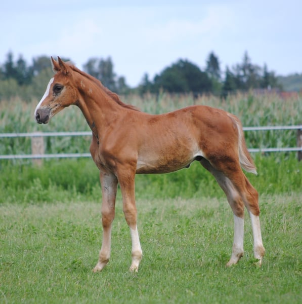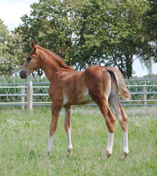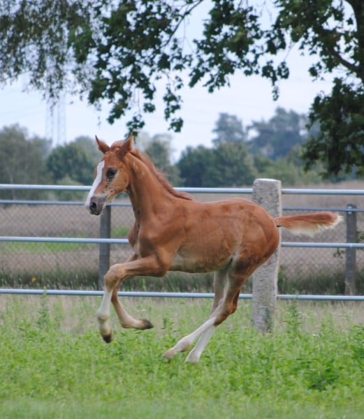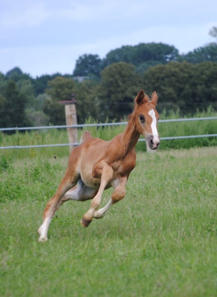 Hengstfohlen mit starkem Fundament, sehr gute Bewgungen, typvoll