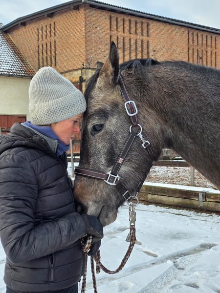 The last son from our highly decorated Nadja – he is our successor. Noble and elegant in his grey coat, with a superb build and good three-gaitedness, he stands on a strong foundation with a lively temperament. His movement is impressive, especially the extraordinary walk that catches the eye, but also his good trot mechanics and his well-sprung canter. His successor has a fantastic character; he is very balanced and fearless. Additionally, he possesses a naturally friendly openness towards humans, which makes handling him very easy. From this dam line, there are also the licensed stallion Nachtruf, the energetic Pr.St. Nachtfee, the proven breeding Pr.St. Nachtfürstin, and the successful competition horse Naendlich. Mother Nadja also produced the successful competition horses Nachtmusik, Narzisse, Nautilus, and Nachtfalke. A video of him in motion can be gladly sent via WhatsApp.
