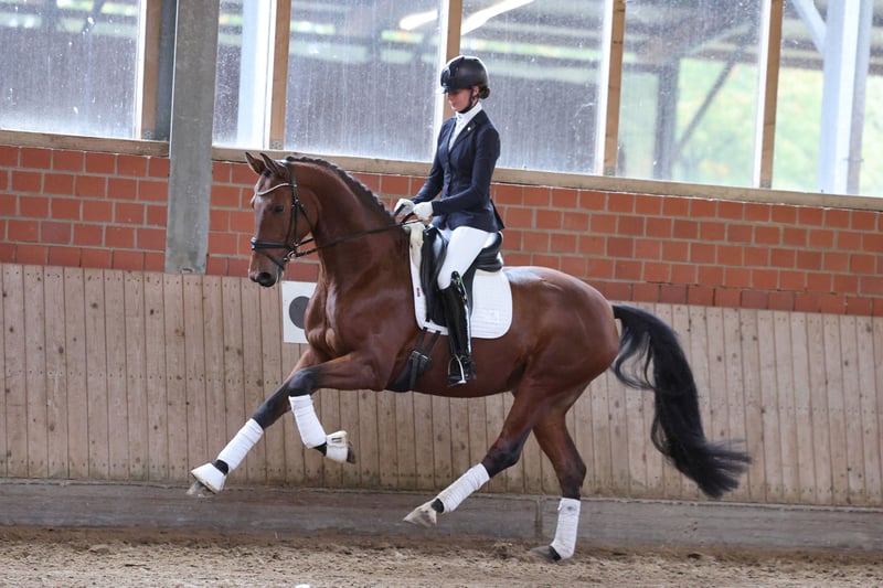 Sportlertyp mit Stil und Kultur im Leistungsprofil. Mit beeindruckender Kadenz und Übersetzung seiner Bewegungen ausgestattet, inszeniert hier eine Dressurkoryphäe vornehmster Sorte seinen Auftritt, dazu kam er im heimatlichen Stall in den Genuss bester reiterlicher Bildung. Siege und Platzierungen in Reitpferde- und Dressurpferdeprüfungen Klasse A sowie hochplatziert im Finale des Trakehner Reitpferdechampionats der Vierjährigen in Münster-Handorf. Weitere Informationen finden Sie unter: https://bid.trakehner.auction/auctions Sport horse model whose performance profile includes style and class. A dressage whizz of the most distinguished kind with impressive cadence and big movement makes his appearance. He has been exceptionally well trained under saddle at his home stable and knows how to capitalize on his training: He has won and placed in ridden and dressage horse classes and finished on a high placing in the Trakehner 4-yr-old riding horse championship in Münster-Handorf. Further information can be found under: https://bid.trakehner.auction/auctions