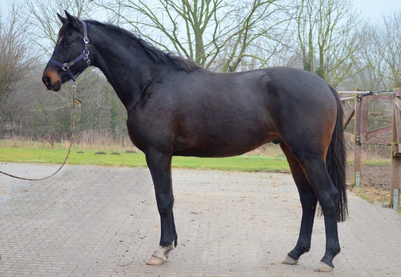 For reasons of space, this typy and healthy gelding is for sale. He has already been lunged and shows himself to be extremely eager to learn, cooperative, and pleasant in daily handling. Genetically, he is excellently secured: His father is the Trakehner champion stallion Rheinglanz (by Helium), who has been successful up to class M. The mother, Pr.St. Schwalbenkönigin (by High Motion), is a half-sister to the licensed stallion Schäplitzer and completed her mare performance test with an excellent final score of 9.14. A young, uncomplicated gelding with a lot of potential, who is waiting for his suitable partner. Raised in a herd, he is group-compatible, and a current radiographic examination is available.