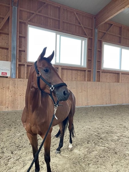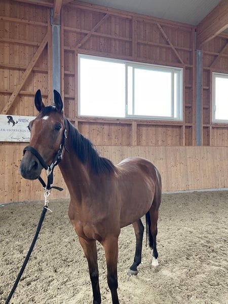 Lejano est un hongre extrêmement sympathique de 5 ans, mesurant environ 160 cm, avec un très bon caractère et beaucoup de charme. Il se montre toujours sage, fiable et bienveillant tant dans les interactions quotidiennes que sous la selle. En extérieur, Lejano se déplace en toute sécurité, que ce soit seul ou en groupe, et a même déjà mené des groupes. Il reste toujours attentif, courageux et confiant. Lors des cours d'équitation, il se comporte bien et avec concentration, tant dans le manège que sur le terrain en sable. Il est agréable à monter, avance bien et souhaite toujours plaire à son cavalier. En tant que cheval de loisir, c'est un véritable rêve - de plus, il montre un grand potentiel en saut d'obstacles et a déjà commencé à sauter. Lejano recherche maintenant un cavalier doux et patient, qui prendra plaisir à apprendre avec lui et à établir des routines. Avec la bonne personne de référence, il deviendra assurément un partenaire pour la vie.