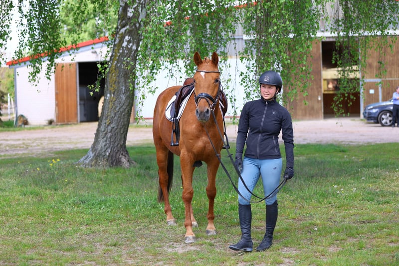 Noch sehr jugendlich im Auftreten, was natürlich seinen erst 3 Lebensjahren zu verdanken ist, weiß Maientanz trotzdem bereits eine gewisse Routine unter dem Sattel auszustrahlen. Vor ca. einem Monat angeritten, absolviert er die ihm gestellten Aufgaben im Schritt, Trab und Galopp mit Übersicht und einem sehr anständigen Wesen und man erkennt, dass Anlehnung und Balance bei weiterer, klassischer Ausbildung, sehr schnell an Ausgeprägtheit gewinnen werden. Auch im Gelände neugierig, aber unkompliziert, sodass über eine zukünftige Vielseitigkeitskarriere ebenfalls nachgedacht werden kann. Mit E.A. Blanc Pain und Uckermäcker zwei solide Reitpferde-Macher in den ersten Generationen, die die gewünschte Bedienbarkeit versprechen.