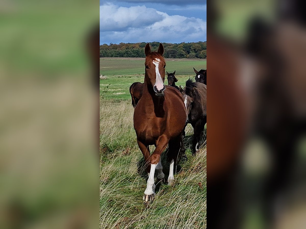 Herzblut impresses with his golden chestnut color and his stable foundation with very good basic gaits. This is a good opportunity to train this youngster, who was born and carefully bred by us, just before he leaves the pasture. We would be happy to ride Herzblut professionally for you. Also interesting for riders, as there is a 2-year-old full brother of the same color and the ancestors were also ridden.