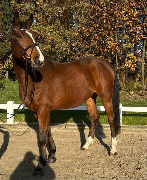 Ce jeune hongre de quatre ans, au profil typique, représente une véritable rareté grâce à son pedigree intéressant dans le saut d'obstacles, associé à un caractère exceptionnel et beaucoup d'expression. Équipé de trois allures de base solides, avec une marche et un galop particulièrement remarquables, il démontre ses compétences exceptionnelles surtout en saut d'obstacles. De plus, il est léger à la main et très clair dans sa tête. Des résultats en concours dans des épreuves de saut classées A* sont disponibles. Un coup d'œil à sa lignée révèle une forte influence de sang de saut d'obstacles, tant du côté du père que de la mère. Son père, Stubbendorff, issu de la famille performante Schwindlerin, a connu des succès sportifs avec plus de 40 victoires et classements en épreuves de saut jusqu’à la catégorie S. La mère, Longhena, issue du fils de Waitaki, Der Dürer, qui a notamment brillé en parcours internationaux avec Michael Jung, possède un sang de élevage de premier ordre du Haras Vogelsangshof. Côté maternel, Longhena provient du célèbre lignage Lottka du Haras Vogelsangshof, dont font partie les olympiens de la compétition équestre, Lester Piggott et Longchamps. Cette génétique exceptionnelle, combinée à un caractère unique et à une grande envie de performer, fait de ce joli hongre un excellent cheval en devenir, doté d’un potentiel de saut exceptionnel.