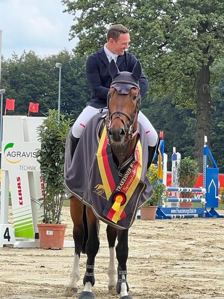 Figlio sempre sublime e dinamico di TEMPELHOF con un'eccellente espressione del tipo e un grande profilo laterale. Königshof sa come ispirare con i suoi movimenti moderni e atletici. Conquista le persone con la sua natura amichevole. La sua fattrice, Königsprimel, è stata la Campionessa della sua ZStE e ha già prodotto due puledri vincitori di premi con i suoi primi due figli, Königsstolz e Königsfriede (Campione Stallone Puledro 2018). Anche la sua prima figlia Königsveilchen ha ricevuto punti premio alla mostra dei puledri di Elmarshausen. Il padre Tempelhof ha avuto successo nel salto ostacoli fino al livello medio (M). È stato campione di salto ostacoli Trakehner nel 2023 (FOTO) e il miglior stallone di salto ostacoli alla sua licenza. Königshof è facilmente affondabile e conosce il salto libero. Esiste una "prova per piccoli allevatori" che è SENZA riscontri. Chiunque ami i cavalli giovani può acquistare un bel compagno per lo sport e il tempo libero che sarà molto divertente!
