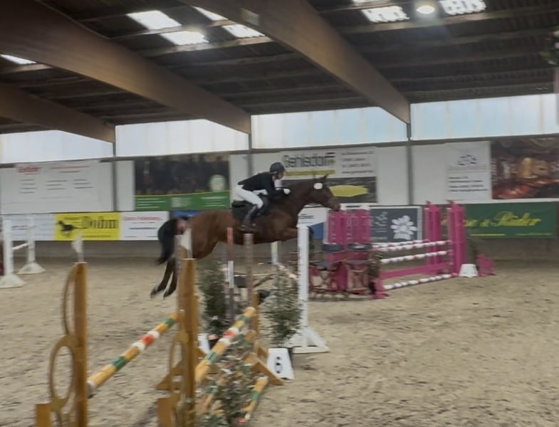 For sale is this loving and versatile all-rounder. Firefly is a 6-year-old Trakehner standing at 16.1 hh. He is a motivated, human-oriented young sporthorse who has already gained initial competition experience and achieved success in dressage, show jumping, and cross-country at levels E and A with teenage riders. His starts in A* and A** show jumping have been rewarded with placings. An all-rounder well-suited as a great amateur horse. Firefly rides calmly in cross-country, is motivated to learn something new every day, and is very easy to ride. Whether jumping, dressage, or hacking, he handles everything with ease. His sire, Tarison, descends from the successful show jumping stallion Hirtentanz. The dam line of Beck and Hockey also indicates top talent in both jumping and dressage. Due to his youthful age, he is still playful and eager to be challenged and developed. He loads well and has no vices.