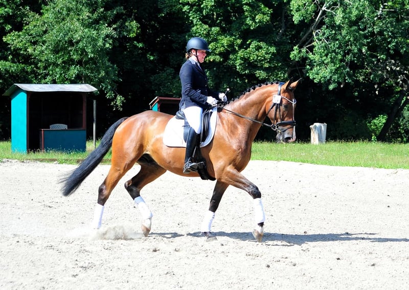 The large-framed Tom Taylor is a very well-rounded horse with a first-class interior and three really good basic gaits. The step is impressive. Very tactful and powerful in trot and canter! Current : 2nd place in a riding horse test We would like him to have a sensitive rider who will let him mature in peace and further promote him in terms of dressage. You can imagine him very well in the big square! Sire Zauberdeyk is currently successful up to Grand Prix. His dam won her mare performance test and produced 4-year-old Taluna, a winner in the riding horse test as well as a successful dressage horse A daughter. From close relatives of the M/S successful horses Thimur, Taylord, Jack-of-all-trades, Trocadero, Trezeguet, Tolkien ...