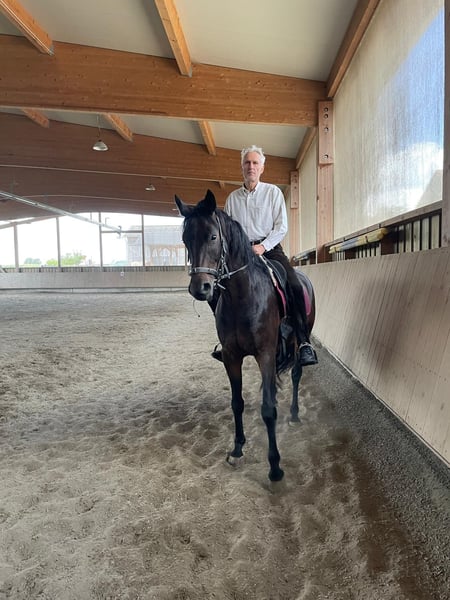 Romulus is a finely built, gentle, fundamentally sound gelding who is very people-oriented and always strives to please his owner. He is a Trakehner with an excellent pedigree, with several Grand Prix winners on his papers. His great-grandfather is Gribaldi, making him, in a way, a nephew of the exceptional stallion Totilas. With a height of 16.1 hh, he presents an impressive figure under a refined rider. Born in 2017, he is in the prime of his life. He is trained in classical dressage and is tuned to subtle aids. He is very attentive, reliable, and willing. Romulus is suitable for dressage or for an experienced, ambitious leisure rider. His current training level is L. In liberty work and on the longe line, he responds reliably to the finest signals. In daily handling, such as grooming, leading, and hoof cleaning, he is well-mannered. He has never been ill and is free of eczema. Trimming hooves, veterinary visits, deworming – he handles everything without issues. He has been kept in group turnout for years but is also familiar with box and paddock housing. A passport and ownership certificate are available. Romulus has become very dear to us and deserves to be loved and treated with the same fairness and respect he has always experienced with us. Thanks to our trust-based training approach rooted in horse communication, he has developed a strong, trusting bond with humans. He is accustomed to gentle, respectful handling and has no undesirable habits. Private sale, well below value due to herd reduction. Further information, photos, and videos available upon request.