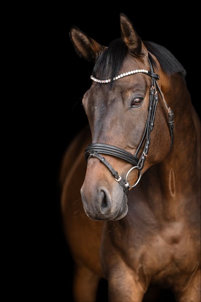 Bonafide es un verdadero talento polifacético. Con Pedigree que combina excelentes genes para la doma y el salto, a los 9 años ofrece, con sus tres buenos pasos básicos, tanto fiabilidad como un evidente placer por el trabajo. Bonafide proviene de E.H. Hibiskus, quien, además de su predisposición para la doma, es conocido por transmitir un carácter ejemplar. Su madre, Belvedere, es una yegua de élite, que participó en la subasta de Neumünster en 2003, y nos ha regalado un total de ocho crías. La cría con Hibiskus se repitió en tres ocasiones. Todos son “caballos del corazón”. Tras ser montado con cuidado a los cuatro años, fue entrenado de forma sólida hasta nivel A/L. Posteriormente, se tomó una pausa que, por motivos personales, duró más de lo inicialmente previsto. Desde hace aproximadamente un año, Bonafide está en manos de un preparador profesional y recibe una formación muy versátil: doma, salto, campo y entrenamiento de resistencia. Nos gustaría que continuara desarrollando esta versatilidad, ya que claramente le produce alegría. Además, quien busque un amigo fiel y sensible para toda la vida, podría encontrarlo aquí. Buscamos para Bonafide un/a jinete/a comprensivo/a, preferiblemente con experiencia en entrenamiento en tierra, que sepa lo que significa poner a un Trakehner de lado. Sería ideal que tuviera una relación exclusiva con él, ya que valora mucho la conexión especial con su jinete. Es imprescindible que reciba diariamente paseos en manada o, en invierno, en paddock. Se busca un buen informe de inspección veterinaria. Quien esté en busca de un compañero equino excepcional, puede contactarnos por teléfono para más información.