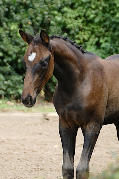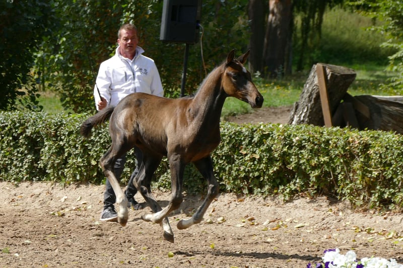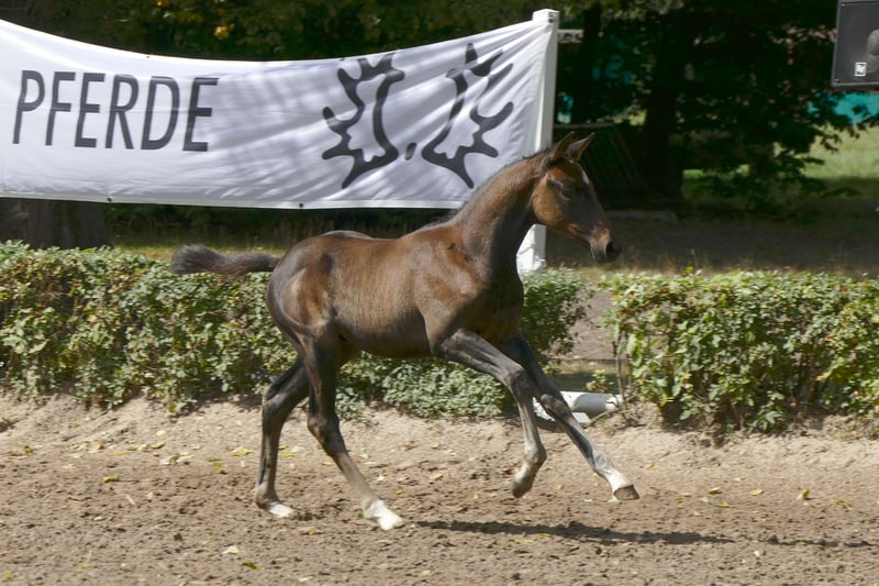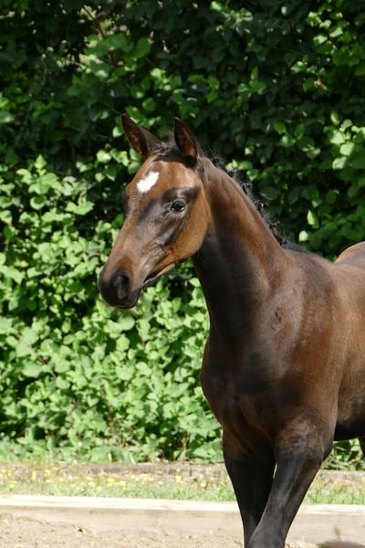 For sale is a promising Trakehner stallion, born in June 2025. This dark bay not only impresses with his elegant appearance but also with his enormous potential for dressage sport. The stallion already shows a promising quality of movement. He is age-appropriately educated and has a very balanced temperament. If you are interested or need further information, please feel free to contact me.