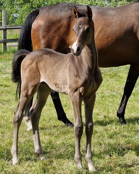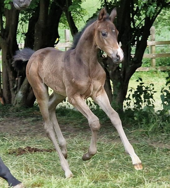 Herzensritter is a son of the premium stallion Noupier x and the premium mare Herzenssache by Glücksruf I. A performance pedigree of the highest class. Proven highly successful stallions such as Duke of Hearts xx, Troupier x, Glücksruf I, Dramatiker, Imperio TSF, and also representatives in the descending line provide this energetic young stallion with all possibilities. Large-framed, balanced, and correct from birth, Herzensritter will have no difficulties proving himself in all disciplines. But also his friendly and people-oriented nature is striking in this typified stallion. We would be happy to take care of the further upbringing and also the initial training for you. Our generous rearing facilities in a herd environment fulfill all wishes.