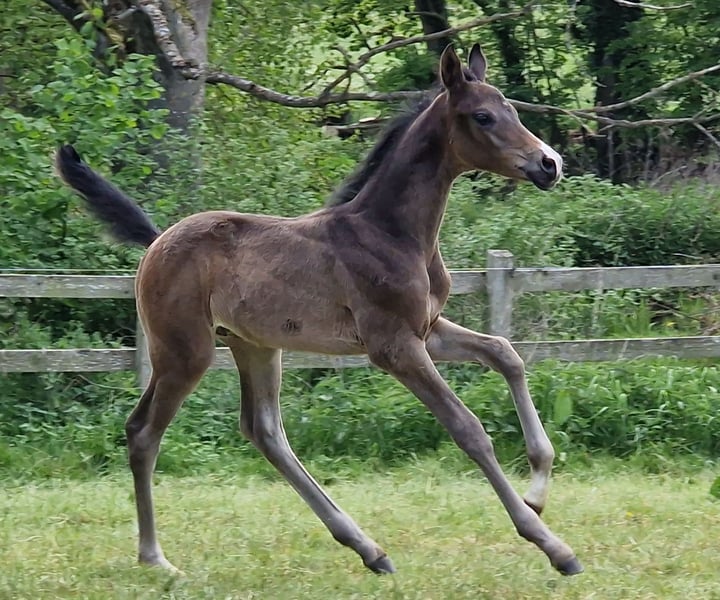 Herzensritter ist ein Sohn des Prämienhengstes Noupier x u. d. Prämienstute Herzenssache von Glücksruf I. Ein Leistungspedigree der sportlichen Extraklasse. Nachweislich hoch erfolgreiche Hengste wie Duke of hearts xx, Troupier x, Glücksruf I, Dramatiker, Imperio TSF und ebenfalls Vertreter im fallenden Stamm ermöglichen diesem bewegungsfreudigem Jüngling alle Möglichkeiten. Großrahmig, ausbalanciert und korrekt von Geburt an, wird Herzensritter in allen Disziplinen keine Schwierigkeiten haben, sich zu beweisen. Aber auch sein freundliches und menschenbezogenes Wesen bestechen bei diesem typvollen Hengst. Die weitere Aufzucht und auch das Anreiten können wir gern für Sie übernehmen. Unsere großzügigen Aufzuchtmöglichkeiten im Herdenverbund lassen alle Wünsche in Erfüllung gehen.