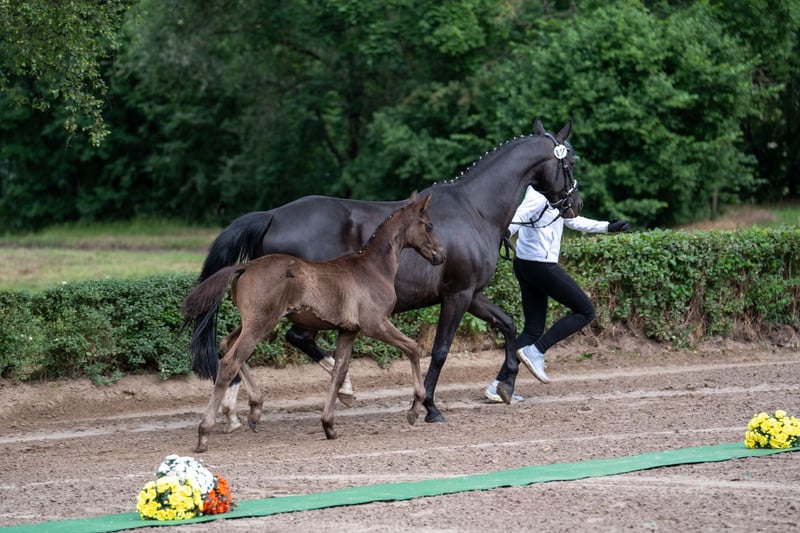 The father, awarded the elite title, holds a prominent position among the Trakehner stallions; he reliably passes on nobility and beauty, dynamic movement, and high rideability. His son, born in March, is also characterized by a very special nobility and distinction; he impresses with his harmonious and rideable body parts, and he moves dynamically and lightly, always in rhythm and in beautiful self-carriage. He is also a gem in terms of character: confident, very people-oriented, he impresses with his exemplary attitude towards all tasks presented to him, naturally halter-trained, loading-friendly, and raised in a natural herd environment. A promising young talent for riding, with his great abilities for a promising career, he will only bring joy.