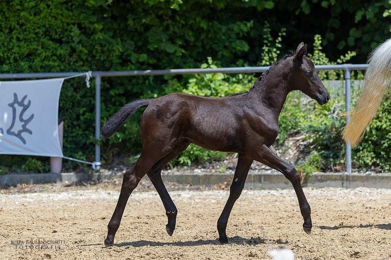 The father, Zauberdesign, is already making impressive appearances at a young age - as a winner in age-appropriate dressage competitions and also through his top-notch performance test. It is no wonder, as he represents the high prominence of the major dressage stages with his father Schwarzgold and his maternal ancestors, the internationally successful Grand Prix heroes Monteverdi TSF and Gribaldi. With his son, he delivers an impressive breeding debut. Highly noble, clearly in type, harmoniously and significantly constructed, this candidate presents himself for future major sporting tasks. Always in rhythm, in emphasized self-carriage, he moves diligently and accentuated, with excellent dynamics. The mother represents a top-class sport horse lineage. From the maternal performance dynasty also comes the internationally celebrated Kaiser Wilhelm TSF and the main sire Kentucky.