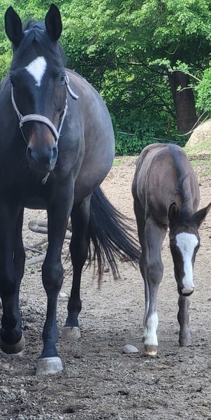 Due to current events: No future black horse will be born as black ! This current color will not stay , he will be black , so black ! From the first day on this stallion catches the eye positively every day ! 3 good GGA ! Largely well-bred , an athlete for whom no way is too far . He could be used for dressage or as an all-rounder . His grandmotherly 'half-brother with dressage sire also makes a good jumper ! He will be suitable for many types of riding . Not excluded for presentation at licensing . - Breed:** Trakehner - Sex:** Stallion - Year of birth:** 2024 - **Color:** Black - Height:** 170 cm - **Discipline:** Dressage I would be happy to send you videos via WA, please state your name and location. But you are also welcome to come by , then I will show you the whole line and another 3 foals for sale and also riding horses . Please make me a fair offer . Before you put the ad on the watch list , you better call me right away ( or via WA ) to get more details about this great foal . I am not a dealer, you have absolutely nothing to fear ! So take the plunge now! I know my horses inside out and will answer all your questions honestly! I want satisfied new horse owners, everything else reflects on me. I am happy to be there for you even after the purchase .
