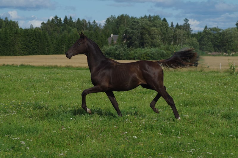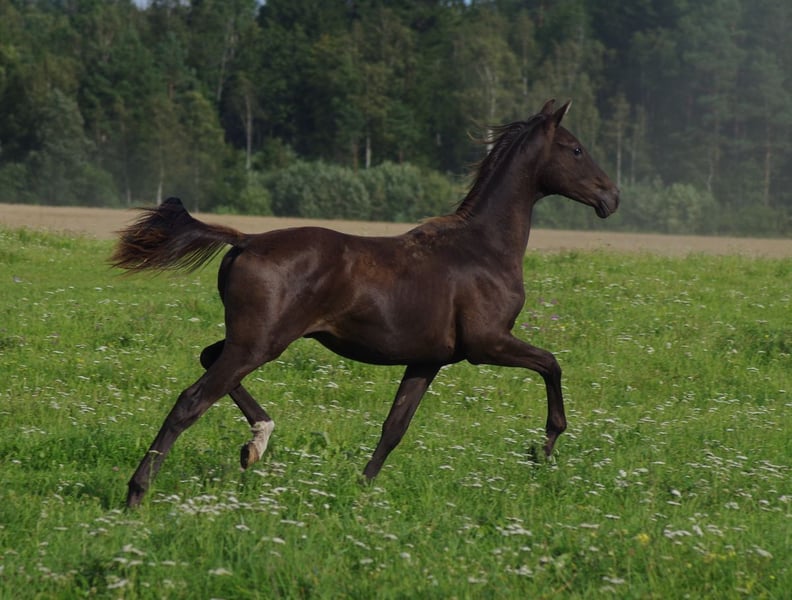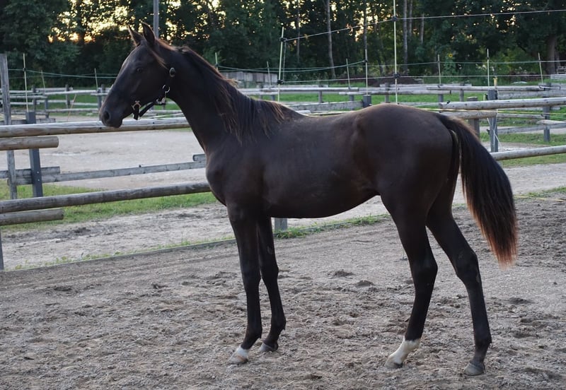 Ein ganz besonderer SMOKEY BLACK TRAKEHNER Junghengst von MILLENNIUM. Ich bin ziemlich sicher, dass er das erste Millennium Trakehnerfohlen mit diesem besonderen Farbgen ist, was ihn absolut einzigartig macht. Smokey Black bedeutet, dass er kein gewöhnlicher Rappe ist, sondern eine Variante des Creme-Gens trägt, er ist ein sogenannter „Palomino Black“. Millennium selbst braucht hier sicher keine Vorstellung, als Trakehner Hengst des Jahres 2022 und derzeit erfolgreichster Trakehner Hengst. Er ist selbst erfolgreich auf Grand Prix-Niveau gestartet und kann gleichzeitig bereits mehr als 100 gekörte Söhne vorweisen – und das nicht nur in der Trakehnerzucht. Er teilt sich auch den Vater (Easy Game) mit der Olympiasiegerstute TSF Dalera. Die Mutter des Hengstes ist die sehr gut bewertete Cremello-Trakehner-Stute Erianthe KA von Goldmaker xx. Die Mutter hat auch den besten jungen Trakehner Hengst national im Jahr 2024 gegeben! Die Großmutter mütterlicherseits wurde in Russland geboren und ist die Enkelin von Homeras, dem Champion der UdSSR. Die Mutterlinie geht auf die Stute Ennam zurück, die selbst zwei Grand Prix-Hengste zur Welt brachte – einer davon (Enisey) war auch Teil des olympischen Dressurteams in Moskau 1980. Das Jungheengst ist sehr ausdrucksstark mit einem hübschen kleinen Kopf; also korrekt gebaut. Steht in Estland, direkt vom Züchter- kann problemlos nach Deutschland gebracht werden. anneli.kadakas@gmail.com https://www.facebook.com/reinu.talu/