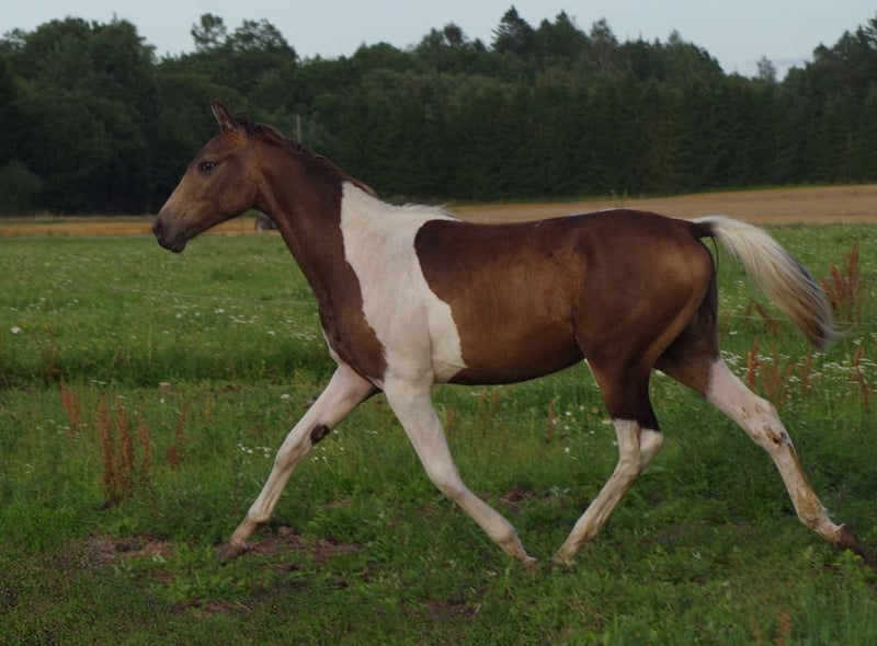 RARITÄT! Sehr schickes trakehner HF in Sonderlackierung buckskin-tobiano. Einer von nur drei mit dieser Farbe! Der Vater, Honeybrook Chapman, wurde in Großbritannien geboren und galt als einer der vielversprechendsten Camaro-Söhne. Camaro selbst war der erfolgreichste Tobianoscheck-Trakehnerhengst mit mehreren Platzierungen bis zur Klasse M in Vielseitigkeits- und Springprüfungen, er hat auch an den Deutschen Bundeschampionaten teilgenommen und sich zweimal in den ersten Rängen platzier. Mutter Blonde Remarque ist Vollblutstute aus USA, muttervater Racey Remarque. Schöner typvollen Junghengst mit tollen Bewegungen und sehr gut Character. Volle Trakehner-Papiere. Endmass ca 162-164 cm. Seht in einem kleinen Gestüt in Estland, kann problemlos nach Deutschland gebracht werden. anneli.kadakas@gmail.com https://www.facebook.com/reinu.talu