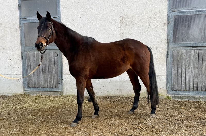 Diese nun 13-jährige Stute von Impetus aus einer Louidor-Mutter kann ein Juwel für die Trakehnerzucht sein. Sie hat außergewöhnliche Bewegungen, die sie für die schwere Klasse der Dressur qualifizieren. Gleichzeitig machen ihre Unerschrockenheit, ihr Mut und ihr gutes Auge am Sprung sie zu einem großartigen Buschpferd. Beide Disziplinen wurden angeritten, und ihr Vermögen zeichnete einen erfolgreichen Weg vor. Es war aller Wahrscheinlichkeit nach ein Verladeunfall, der sich ereignete, bevor die Stute in meinen Besitz kam, der diesen Weg unterbrach. Die Stute ist seitdem nicht mehr reitbar und hat ein paar Handicaps, über die ich gerne bei Interesse Auskunft erteile. Es wäre eine Schande, sie der Zucht vorzuenthalten, es gehört nur ein wenig Mut dazu. Derzeit steht die Stute in der Nähe von Augsburg auf der Koppel, was das Aufnehmen von Bewegungsvideos bei diesen Bodenverhältnissen schwierig machte. Wenn sie jedoch für diese Decksaison noch vorbereitet werden soll, ist ein Verkauf genau jetzt richtig. Gerne kann sie während der Trächtigkeit und zum Abfohlen auch in diesem Stall (der gleichzeitig eine Zucht beherbergt) stehen bleiben. Auch eine Aufzucht des Fohlens ist dort möglich. Es kann also ganz einfach sein...