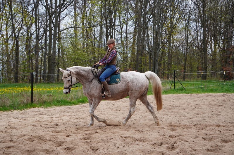 Diese anmutige Fliegenschimmelstute wurde im Jahr 2010 geboren und besticht durch ihre elegante Erscheinung sowie ihre vielseitigen Einsatzmöglichkeiten. Mit einem Stockmaß von 168 cm vereint sie Größe, Präsenz und Bewegungsqualität in idealer Balance. Kea ist lieb, umgänglich, leichtfuttrig, war in der Vielseitigkeit Klasse A**, hat drei Fohlen wovon 2 Siegerchampionatsfohlen der neuen Bundenländer wurden. Abstammung: V: Cornus MV: Normativ ox M: Kadmea Stutenlinie: Hauptgestütslinie Trakehnen : T7 Linie der Kassette. Die Stutenlinie ist für ihre Robuste und Langlebigkeit bekannt und es ist keine Seltenheit das diese Pferde mit über 30 Jahren noch geritten werden können, je nach Pflege und Haltung des Pferdes. Als typische Trakehner-Dame verfügt sie über eine sehr gute Grundausbildung. Sie zeigt sich stets gut geritten und ist im gehobenen Freizeitbereich eine zuverlässige Partnerin. Ihre ausgeglichene Art und ihre Lernbereitschaft machen sie zu einem idealen Begleiter für Reiter, die Wert auf Vielseitigkeit und menschenbezogenen Charakter legen. Diese Stute hat bereits erfolgreich an verschiedenen Turnieren teilgenommen und überzeugt durch ihre Rittigkeit, ihren guten Charakter sowie ihre Bereitschaft, Neues zu lernen. Kea ist ein echtes Allround-Talent für den vielseitigen Freizeiteinsatz – eine Trakehner-Stute, die mit ihrer Qualität und ihrem Charme begeistert. Für weitere Informationen oder einen Besichtigungstermin stehe ich gerne zur Verfügung. Aktuell befindet sie sich bei uns in Beritt und wird nach ihrer Fohlenpause wieder antrainiert. Die Bilder und Videos sind aktuell. Sie wird im Auftrag vom Züchter verkauft.