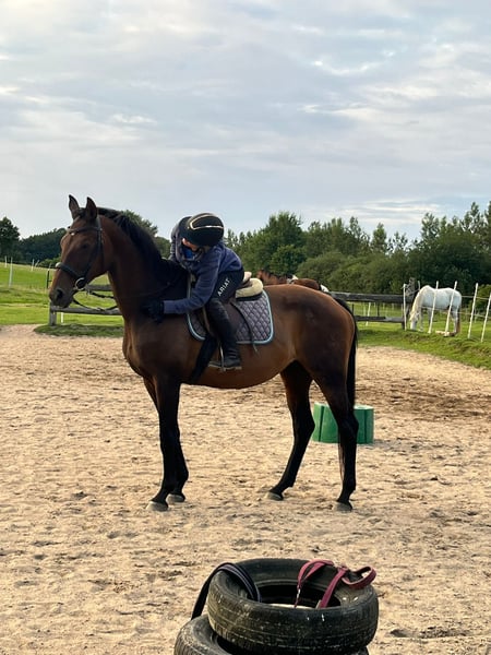 Samira sucht dringend ein neues 5 Sterne Zuhause. Sie ist eine sehr sanfte, sensible Maus, die immer gefallen möchte und offen für Neues ist. Sie benötigt einen ebenso sensiblen Reiter der die Hilfegebung beherrscht und keinen Haudegen auf dem Rücken. Sie verfügt über viel go, drei hübsche Grundgangarten und viel Interesse an der Mitarbeit. Klare und ruhige Strukturen helfen Samira Vertrauen zu gewinnen. Sie bleibt immer korrekt, keine bösen Eigenschaften beim reiten oder im Umgang. Nur einen trakenertypischen Vorwärtsdrang, der absolut händelbar ist. Sie steht bei uns nur zum Verkauf und ist zur Zeit nicht im Training.