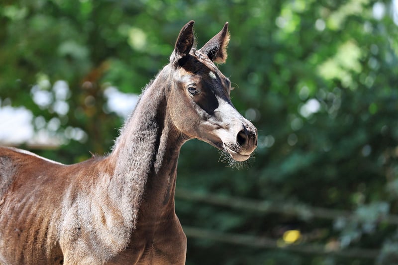 Unsere Goldfee v. Hallifax a.d. St.Pr. Stute Golden Surprise v. Karolinger-Hertug ist an Adel und Schönheit nicht zu überbieten! Schweren Herzens suchen wir einen Bestplatz für dieses kleine züchterische Juwel. Der Stall ist voll und auch wir können nicht alle behalten… Goldfee rangierte auf dem Endring des Trakehner Fohlenchampionats West 2025 und wurde mit 55,5 Punkten als Championatsfohlen prämiert. Die Zaubermaus präsentierte sich stolz und edel und bekam für den Typ eine 8,5. Auch die Gangqualität wurde mit 8,0 im Trab und Galopp bewertet. Außerdem zeigte das Fohlen während der Präsentation ihr hervorragendes Interieur. Völlig gelassen und wohlerzogen absolvierte sie jeden Auftritt im Freilaufen und geführt am Halfter. Sie ist sehr menschenzugewandt, genau wie die Mutterstute, steht in einer kleinen Herde auf der Weide mit Offenstall/Laufstallhaltung in der Nacht. Meine Kinder können mit Stute sowie Fohlen am Halfter spazieren gehen bzw. die Stute mit Fohlen bei Fuß reiten. Das ABC der Fohlenschule mit Hufe geben, Putzen, Schmied vorstellen, Hänger fahren, Wurmkur verabreichen – ist alles von klein auf geübt und problemlos möglich. Die Mutter, St.Pr.St. Golden Surprise v. Karolinger I-Hertug ist ein Bild von einer Trakehner Stute und einfach wie gemalt. Sie ist im aktuellen Trakehner GP Programm und hat die Staatsprämie. Sie war, wie ihr Vater und fast alle Großväter bis zur Dressur Klasse S siegreich mit über 120 Platzierungen in den Niederlanden! Dabei war die jetzige Bilderbuch-Mutterstute ein leichtrittiger Schleifengarant und später meiner Tochter mit 10 Jahren ein einmaliges Lehrpferd. Ihre Stutenleistungsprüfung absolvierte sie damals mit 7.86 als eine der Besten des Jahrgangs und errang Dreijährig den Ib-Preis auf der Eliteschau in Wickrath, im Folgejahr den Ib-Preis ihrer Klasse anlässlich der Landesschau Rheinland und im Jahre 2019 schließlich den Klassensieg der Landesschau in Wickrath. Sie kommt aus der Stutenfamilie der O177A Gundel - Schlemminger-Grabau und führt in der hinteren Generation neben Erfolgsgarant E.H. Gribaldi die Verbindung von Mackensen, Saros xx und Magneet. Aus der gleichen Linie hat Züchter Antoon von Osch schon fünf Elitestuten. Auch Golden Surprise ist auf gutem Weg dorthin. Ihre bildschöne Tochter Goldmarie aus dem Jahr 2024 ist typvoll und mit den guten Reitpferdepoints der Vorfahren ausgestattet. Für den Typ bekam das Prämienfohlen (55 Punkte) dann auch gleich eine 8,5 auf dem Fohlenchampionat West. Vater von Goldfee ist der bewegungsstarke und lackschwarze Prämienhengst Hallifax Lyng v. Schwarzgold a.d. Halle Berry v. Aston Martin, der 2022 das Trakehner Bundeschampionat der Vierjährigen in Dänemark und 2023 und 2024 das Trakehner Bundeschampionat der Fünfjährigen in Münster-Handorf gewann. Vater von Hallifax Lyng ist Schwarzgold, dem in zweiter Generation der legendäre Imperio folgt, der unter Reitmeister Hubertus Schmidt im internationalen Grand Sport siegreich war. Schwarzgold selbst war Bundeschampion und ist einer der wenigen Hengste, die sich drei-, vier-, fünf- und sechsjährig für das Bundeschampionat qualifizieren konnten und später bis S erfolgreich waren. In der Zucht hat er sich mit Siegerstuten, über 10 gekörten Hengsten, darunter ein Sieger- und ein Reservesiegerhengst, einen Namen gemacht. Die Mutter Halle Berry war dreijährig Trakehner Championesse in Neumünster. Sie erhielt im Schritt, Trab und Galopp jeweils die Note 9 und erreichte damit das höchste Ergebnis auf nationaler Ebene! Im selben Jahr war sie der Star der Auktion in Neumünster, wo sie für 65.000 Euro als teuerstes Reitpferd verkauft wurde! Großvater Aston Martin startete unter Helene Melsen in internationalen Großen Preisen. Aston Martin war jahrelang Mitglied der dänischen Nationalmannschaft und hat viele Siege und Platzierungen auf nationaler und internationaler Ebene errungen. Hallifax entstammt einer der derzeit besten Zuchtlinien des Trakehner Verbandes, der H-Linie. Aus demselben Stutenstamm stammt auch Stempelhengst Helium. Mehr zum Fohlen auf unserem Instagram Kanal Rittergut_Schafhausen Kontaktaufnahme gerne telefonisch oder per WhatsApp. Oder per E-Mail an postamt@gut-schafhausen.de
