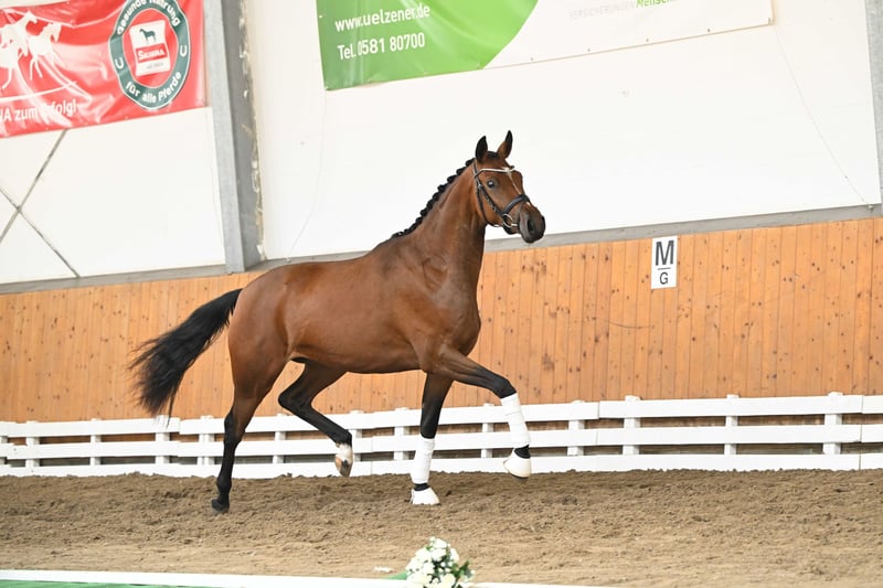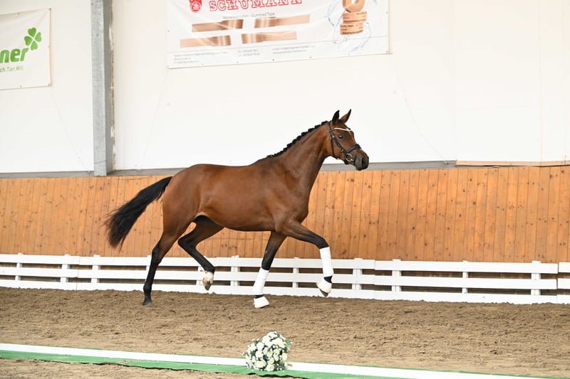 Der Siegerhengst Impact feiert eine faszinierende Vererberpremiere. Schwalbenblüte vertritt als charismatische Prinzessin ein Haus mit Tradition und Kultur und setzt sich vornehm und schön, taktbeflissen und in kraftvoll-dynamischem Bewegungsfluss in Szene. Ihre Schwester Pr.St. Schwalbenblume sammelt altersgemäß aktuell Erfolge in Dressurpferdeprüfungen Kl. L. Die Mutter stand als Reservesiegerin in einem Mittelpunkt der ZSE Nordost und verweist mit dem S-Dressur erfolgreichen Statement, dem erfolgreichen Vererber Schäplitzer sowie den hochdekorierten Prämienstuten Schwalbengold und Schwalbenfürstin auf eine erlesene Schar von Geschwistern. Die Stute wird anlässlich des Trakehner Hengstmarktes am 28.112025 bei einer Auktion versteigert, alle Informationen finden Sie unter: https://bid.trakehner.auction/auctions
