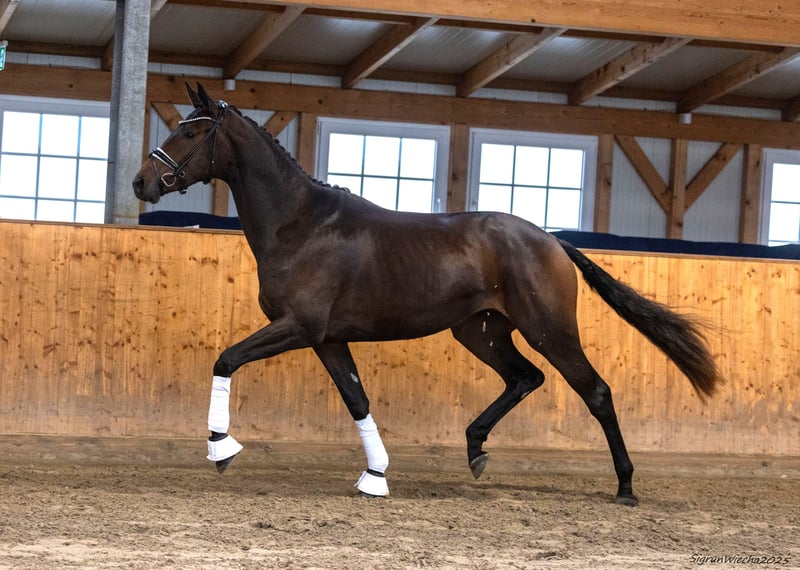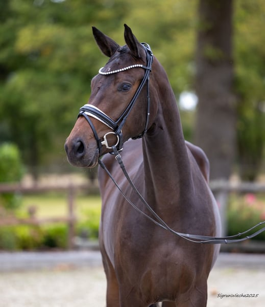 Glanzvoll inszenierte Bühnenpremiere des WM-Finalisten der Jungen Dressurpferde: TSF Gaspard ND verbindet sich mit der Elitestute Par Exquisite, und mit dem Nimbus des Exquisiten setzt sich Par Elégance athletisch, in effektvoll-akzentuierter Bewegungskompetenz mit sämtlichen Attributen hohen Leistungsadels in Szene. Ihr mütterlicher Bruder Pokerface wird als Anna Stahnkes gekörter Sporthengst mit ***-Erfolgen auf der S-Dressurbühne gefeiert. Aus berufener Leistungsdynastie, die die S-Parcours Spezialisten Poor Grey, Prisma, Pretty Woman und Fiffikus sowie die Vielseitigkeitshelden Potzblitz und Par Excellence hervorbrachte. Die Stute wird anlässlich des Trakehner Hengstmarktes am 28.112025 bei einer Auktion versteigert, alle Informationen finden Sie unter: https://bid.trakehner.auction/auctions