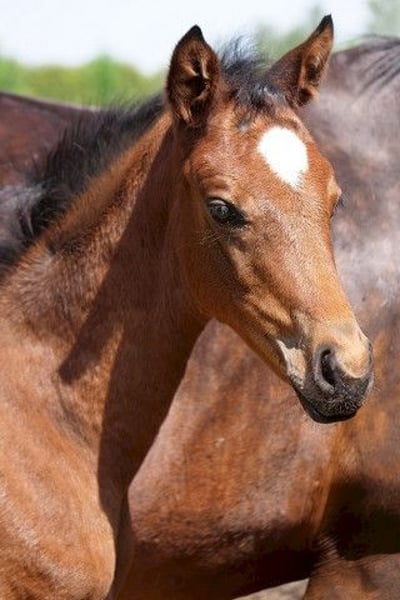Sehr typvolle und menschenbezogene Jungstute. Sie bewegt sich locker und getragen und verfügt über ein korrektes Fundament und eine schöne Oberlinie. Abstammungsgemäß ist diese Halbblutstute sowohl für den Sport als auch für die Zucht höchst interessant!
