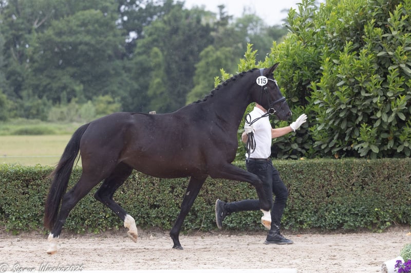 In besonders vornehmer Aufmachung erscheint die charismatische Donaudiva. Sie bewegt sich federleicht, taktbeflissen und dynamisch und vermittelt eine vortreffliche Referenz ihrer unter Dressuraspekten exklusiven Genetik, denn in den ersten drei Generationen verbinden sich sechs in Grand Prix- und S-Dressurkonkurrenzen erfolgreiche Vererber. Die Mutter ist eine rechte Schwester der ZSE-Reservesiegerin Donauflamme, zweifache Trakehner Reitpferdechampionesse, Finalistin im Bundeschampionat und Preisspitze der Reitpferdeauktion des Trakehner Hengstmarkts. (NMS ‘12/49) Eng verwandt mit dem vielfachen S-Dressursieger Donaudichter. Die Stute wird anlässlich des Trakehner Hengstmarktes am 28.112025 bei einer Auktion versteigert, alle Informationen finden Sie unter: https://bid.trakehner.auction/auctions