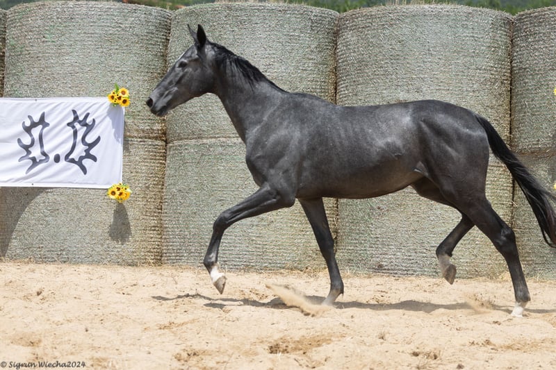 Unsere „Grand Dame“ Bella Chocolotta v. Suchard - Machandel schenkte uns fast ausnahmslos Stutfohlen. So erblickte dieses Jahr schon Tochter Nummer vier von Eliteanwärter Sweetwaters Ziethen TSF das Licht der Welt. Wir können daher aus dieser sehr fruchtbaren, leistungsstarken Stutenfamilie auch weibliche Nachkommen an Züchter und Reiter abgeben, die diese sportlich gezogenen jungen Pferde weiter fördern und ggfs. später auch wieder dem Trakehner Genpol zuführen. BELLETRISTIK wurde am 11.04.2022 geboren und anlässlich der Fohlenregistrierung als Premiumfohlen eingestuft. Sie verfügt über drei gute Grundgangarten mit der gewünschten Bergauftendenz. Ausgestattet mit viel Bein und einem harmonischen Körper verspricht sie ein sportliches Pferd zu werden, das darüber hinaus eine interessante Genetik aufweist. Die leistungsgeprüfte Mutter (SLP Endnote 7,92) Bella Chocolotta v. Suchard ist Halbschwester zu vier - in verschiedenenen Zuchtverbänden - gekörten Hengsten. Darunter der Halbblüter Pampero v. Panchero II AA, beeindruckernder Sieger des 70 Tage Tests in Marbach und dem beim ZSAA gekörten B.B. King v. Best Before Midnight, der einen sehr guten 30 Tage Test absolviert hat und im Turniersport in VS-Prüfungen erfolgreich war. Ihre Halbschwester Belle Petitesse ist im Leistungsstutbuch des ZSAA eingetragen. Der mütterliche Großvater Suchard, selbst in Springen bis Klasse S erfolgreich, ist Vater der gekörten Hengste Ballisto Z, Budweisser Classic, Becket und den Vollbrüder Lossow und Lessen (GB). Die Liste seiner sporterfolgreichen Nachkommen ist lang. Er lieferte in der Trakehner, Oldenburger und Rheinischen Zucht etliche Sportler für Vielseitigkeit und Springen. Einer seiner bekanntesten Nachkommen, neben den sporterfolgreichen Hengsten Ballisto Z und Budweisser Classic, ist Finch Hatton TSF. Suchard findet man ebenfalls als Vater der E.St. Blanchette, Mutter des Blancor. Über Grossmutter Bella Marjell, ebenfalls geführt im Leistungsstutbuch des ZSAA (Abt. D 10/10) führt Belletristik das Blut des in Mächtigkeitsspringen siegreichen Machandel, der später in Polen stationiert war. Über die Väter Bartholdy, Seeadler v. Habicht und den harten Vollblüter Nemrod xx im fallenden Stutenstamm findet man geballte Leistung auf der Basis eines polnischen Stutenstammes. Die dritte Mutter Bella Babette v. Bartholdy ist eine Vollschwester des bis Kl. M erfolgreichen Vielseitigkeitspferdes Ben Bartholdy. Belletristik’s Vollschwester BELLEZIGANE (*2019) war 2021 Auktionspferd beim 59. Trakehner Hengstmarkt und wurde 2023 in Hessen mit einer Prämienpunktzahl von 53,5 in das Trakehner Stutbuch eingetragen. Eine Halbschwester, BELLISSIMA v. Sturmklang, erhielt die Prämienpunktzahl 53 bei ihrer Eintragung. Vater ist der unter Sophie Leube bis CCI3*-L mehrfach siegreiche Weltmeister der 7jährigen Vielseitigkeitspferde in Le Lion d`Angers 2020 Eliteanwärter SWEETWATERS ZIETHEN TSF, der wieder die Tabelle des TV "Sportsterne für Trakehner Hengste", diesmal 11 - 15 j, anführt. Er ist Vater u.a. der 2023 als Prämienanwärterin eingetragenen Bellezigane, die 2021 über die Auktion in NMS den Weg in ein gutes Züchterhaus fand. Ebenfalls Vater des unter seiner australischen Besitzerin, Natasha Moody, erste Erfolge sammelnde SWEETWATERS OHLALA Beide stammen aus dem mit wenigen Nachkommen - ausschließlich aus unserer Zucht stammenden - vertretenen ersten Jahrgang 2019. Seine ältesten Nachkommen sind dies Jahr erst fünf Jahre alt. Sweetwaters Ziethen ist zudem Vater von etlichen hochbonitierten Prämienfohlen, die z.T. über Auktionen des Trakehner Verbandes und unseren gestütseigenen Online Auktionen bereits ihren Weg zu guten Aufzüchtern gefunden haben. 2023 und 2024 bekam Sweetwaters Ziethen zudem viel Zuspruch in Frankreich von Züchtern des Selle Francaise und Anglo-Arabern. Er ist Vater von 36 Nachkommen aus teils hochinteressanten Müttern. So stellte er Mitte September 2024 in Pompadour beim Journees international de L’Anglo-Arabe 2024 mit seiner Tochter OCYALEE DOMERGUIE AA a.d. Belhyosa Domerguie AA v. Veloce de Favi AA - Iago V AA die Championess de France foals femelles AA, Section 3. Ein weiteres bei dieser Veranstaltung hochbonitiertes Anglo-Araber Fohlen ist ONLY YOU DOMERGUIE AA a.d. Bahira de Domerguie AA v. L’Elu de Dun AA, der Mutter des Söderhofer Beschälers I’ll win Domerguie AA. Bereits aus seinem ersten französischen Jahrgang konnte sich Mitte September 2023 in Pompadour seine Tochter NOVELA FORCE AA a.d. Reva Force AA v. Quatar de Plape AA in der Section 3 der Anglo-Araber Stutfohlen einen der vorderen Plätze sichern. Der YouTube-Link zeigt Vater SWEETWATERS ZIETHEN TSF bei seinem Sieg im CCI3*-S in Strzegom anlässlich des October Festival 2022. Belletristik ist in der Kollektion unserer Select Sale 2024, die am 22.12.2024 online gehen wird. Sie können sich zu dieser Aktion registrieren. Bid up startet am 29.12.2024 ab 18:00 Uhr (MEZ) Auktionslink (die Kollektion wird ab 22.12.2024 online einzusehen sein) - Link kopieren und im Browser einfügen: https://auction.sweetwater-stud.com/auctions Weitere Informationen auf unserer Webseite: https://www.sweetwater-stud.com