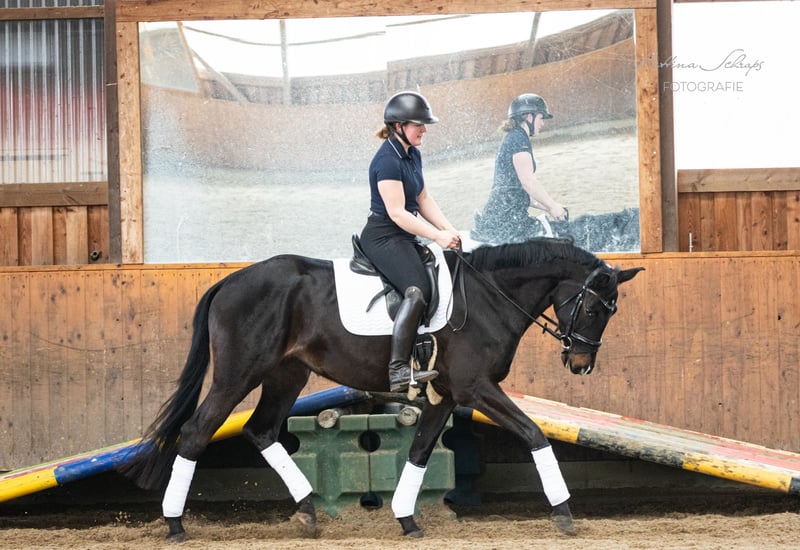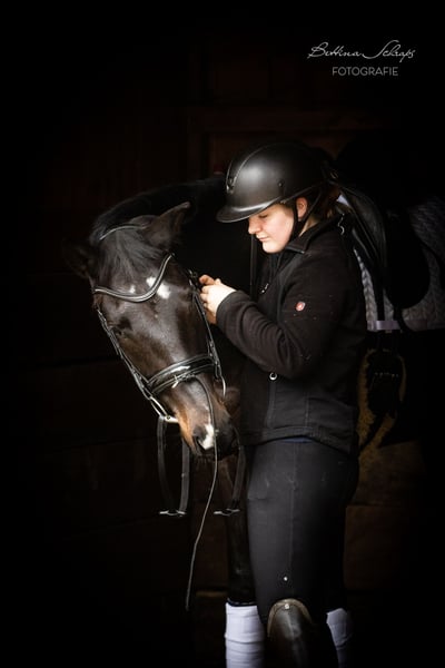 Urania została rozpoczęta w treningu w wieku czterech lat, a następnie miała jeszcze czas na dojrzewanie. Od kwartału ponownie jeździmy na niej regularnie, jest absolutnie współpracująca i każdego dnia robi postępy. Oprócz pracy w ujeżdżeniu, pracujemy z nią również w terenie, a już wykonuje pierwsze skoki przez kolorowe tyczki i mniejsze przeszkody terenowe. Jej ojciec, kandydat na konia elitarnego Ganderas, był już siódmego roku życia plasowany w konkursach S-Dressage. Film na YouTube pokazuje go w konkursie S. Jej matka była nagrodzoną klacz Trakehnera i zwyciężczynią swojej testu wytrzymałościowego dla klaczy. Ponadto jej rodowód sięga dwukrotnie do niezapomnianego E. H. Gribaldi, zarówno po stronie ojca (E. H. Hofrat), jak i matki (E. H. Easy Game). W obsłudze Urania jest prawdziwym skarbem i nie wykazuje żadnych niepożądanych zachowań. Zna pastwisko, wolną stajnię, boks oraz lonżę. Latem wykazuje niewielkie objawy ekzemu, które skutecznie kontrolujemy za pomocą derki na wybiegu. Poszukujemy dla naszej bardzo przyjaznej ludziom Uranii rodziny z doświadczeniem w szkoleniu młodych koni. Ze względu na jej wiek i poziom wytrenowania, nie jest to koń dla początkujących jeźdźców, mimo że jest naprawdę bardzo łagodna. Sprzedajemy ją na zlecenie hodowcy. Dostępne są zdjęcia rentgenowskie, które w razie potrzeby wyślemy.