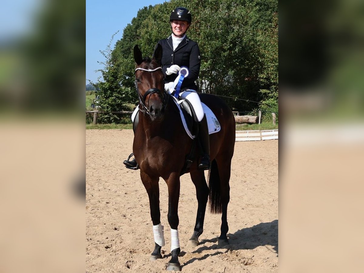 Die 4jährige Prämienstute Valentiana ist eine sportlich geprägte Stute mit viel Bein, großen Partien, drei sehr taktsicheren und guten Grundgangarten. Sie überzeugt durch ihre hohe Rittigkeit und ein feines Sitzgefühl. Aktuell hoch platziert in Reitpferdeprüfung - WN 8,0!. Ihre Stutenleistungsprüfung legte sie mit der höchsten Rittigkeitsnote des Starterfeldes ab. Beim Freispringen zeigt sie Übersicht, Freude, Vermögen und Manier. Sie hat ein wunderbares Interieur, ist sehr angenehm zu reiten - sehr zuverlässig und auch im Gelände fein zu reiten. Ein Pferd mit dem SIE viel Freude haben werden! Wir reiten unsere jungen Pferde in Ruhe an und verzichten bewusst auf eine spannige Vorstellung. Ihr Vater His Moment war Siegerhengst der Trakehner Körung und ist Vater von drei gekörten Hengsten sowie diversen Siegerstuten. Auch im Sport brillieren seine Nachkommen. Ihre Mutter Valentine ist eine sehr modern aufgemachte Tochter des Kurz Grand Prix erfolgreichen Elitehengstes TSF High Motion und Enkelin des vielfach Grand Prix und Grand Prix Special erfolgreichen Showmaster. Valentine stellte inzwischen mehrfach hoch dekorierte Fohlen auf den Fohlenschauen. Sie ist eine Halbschwester des S-Dressur erfolgreichen Valpiano sowie der Prämienstuten Vittoria, Veruschka, Vitalia I u. II und Valenta. Aus der Hämelschenburger Stutenfamilie der Vilja von Julmond stammen die bewährten Vererber Van Deyk (Grand Prix), Vincent, Valerian (HLP Sieger, Dressur Kl. S, Vielseitigkeit) und Velasquez (Spr. Kl. M) sowie Peter Thomsens WM Vielseitigkeitspferd Vilano.